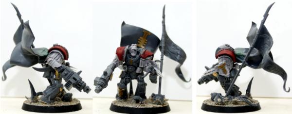As part of my growing Inquisitorial Force I have been looking into making a terminator Inquisitor out of what I have to hand (which it turns out is alot) I've made some progress on the base and armour and think he's coming together rather well, I had to reappropriate the shoulder pads from one of my old broken Cataphracti and
