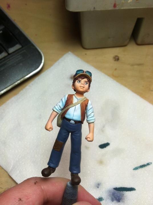 I'm going to re-paint the gun in a slightly lighter blue than the fabric at his belt -- and I managed to drop him at one point, so I have to fix some chips in his back.