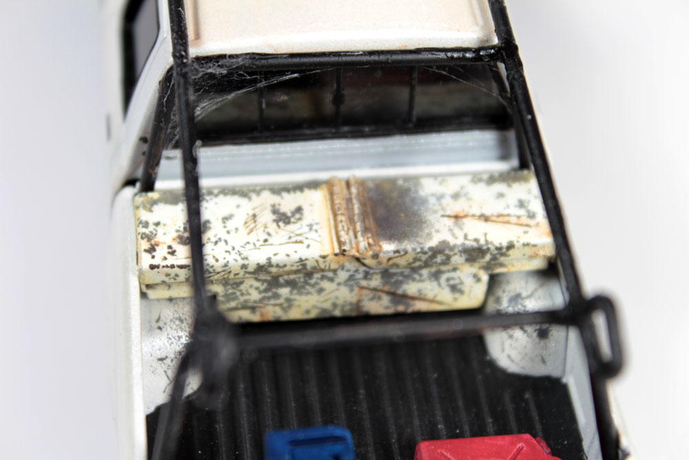 I love your work thus far. The weathering and details on the landscaping truck are incredible. Having worked many a summer in that particular field, I can definitely say its spot on! I really like the windshield effect as well as the touch of leaves in the bed. And awesome work on the Castle diorama- Miyazaki movies are definitely among some of my favorites.
