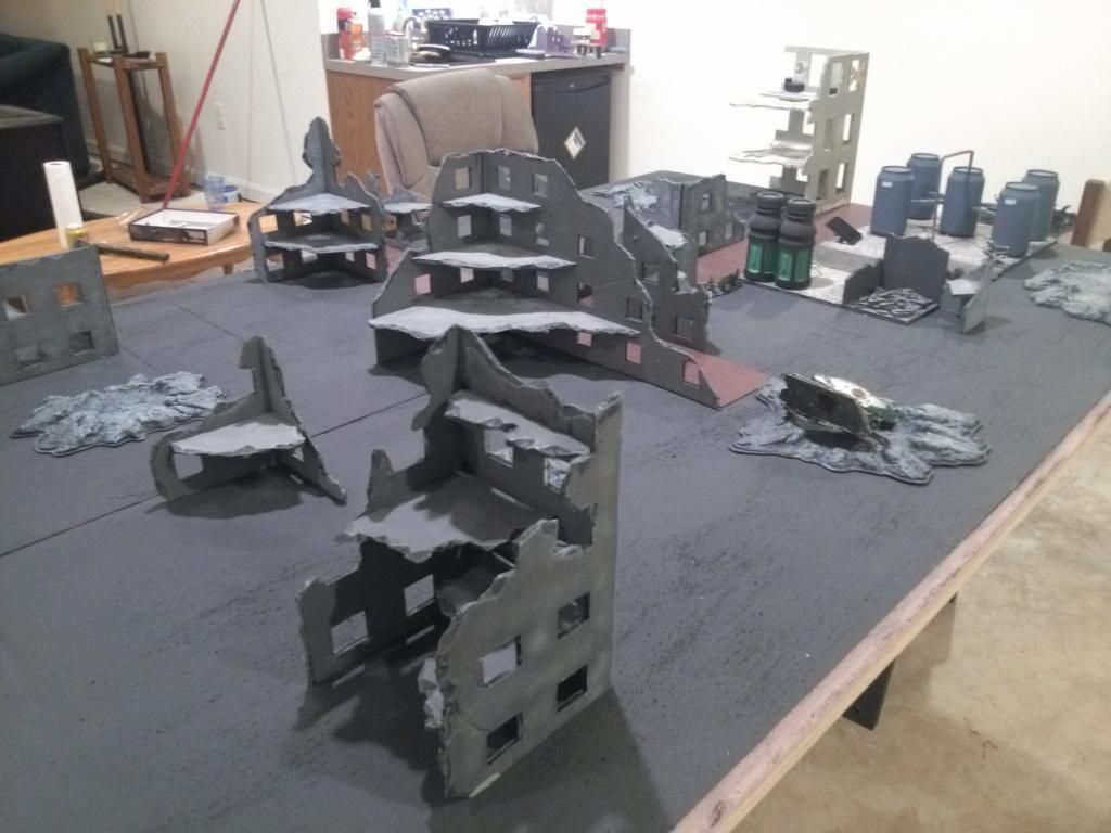 urbanevil wrote:I like it man, that's actually exactly what im looking to do. Something still playable but with a run down war torn city. If i may ask what did you use to construct your ruins/buildings with? Just lookin at the board has giving me some great ideas!