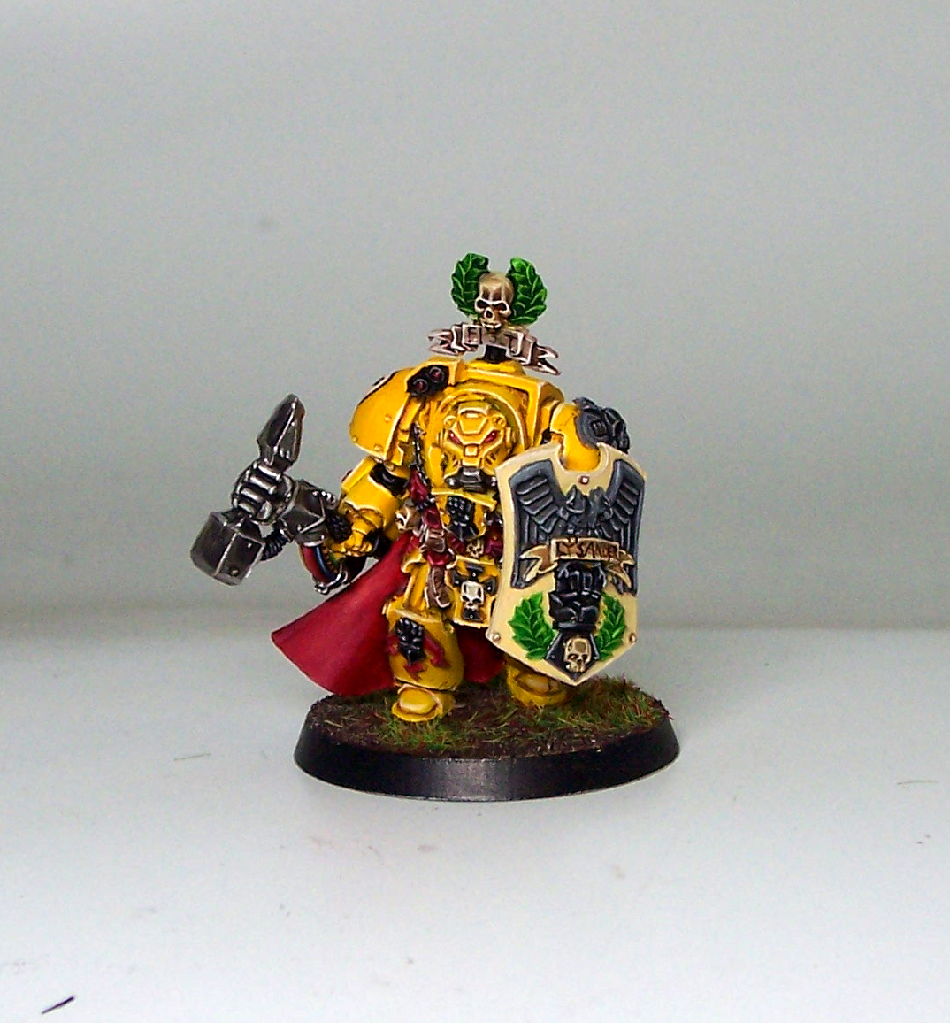He looks excellent! Very high standard of painting. The Terminator helmet is an interesting touch; most people like the mohawk head enough to keep it, but he looks good helmeted too. The base is a little too boring for my taste (brown base rim would help) but I love the model all things told.