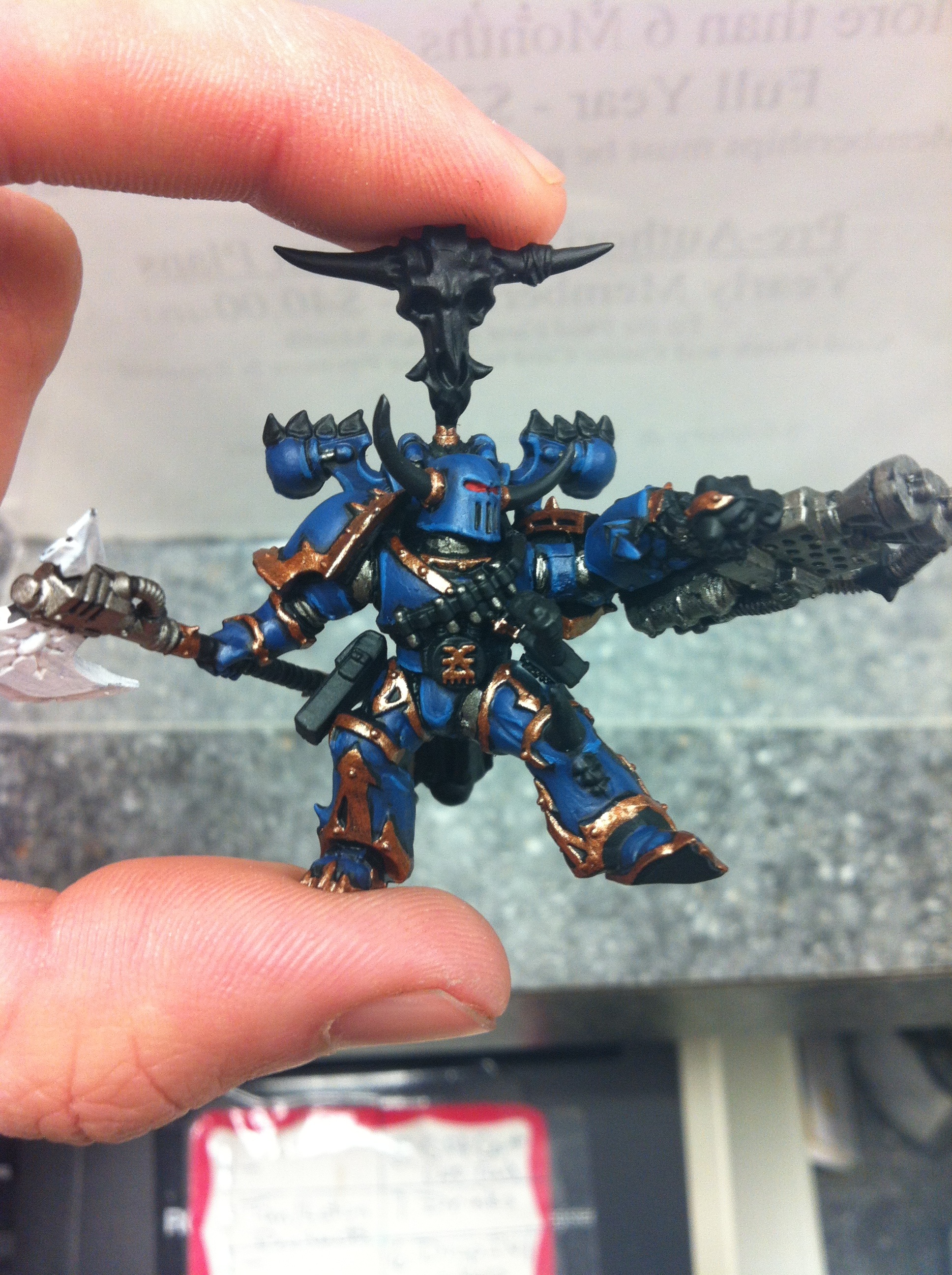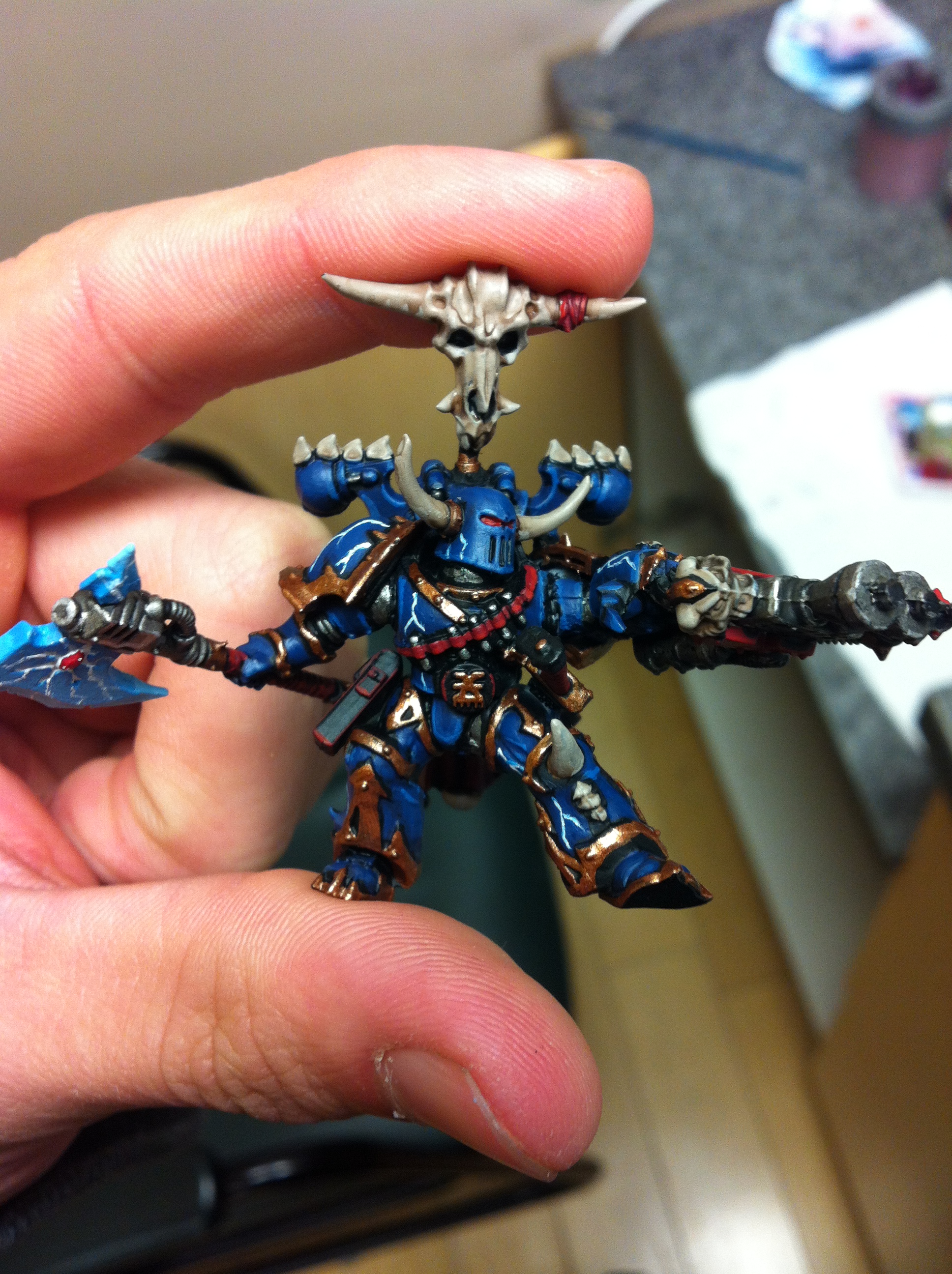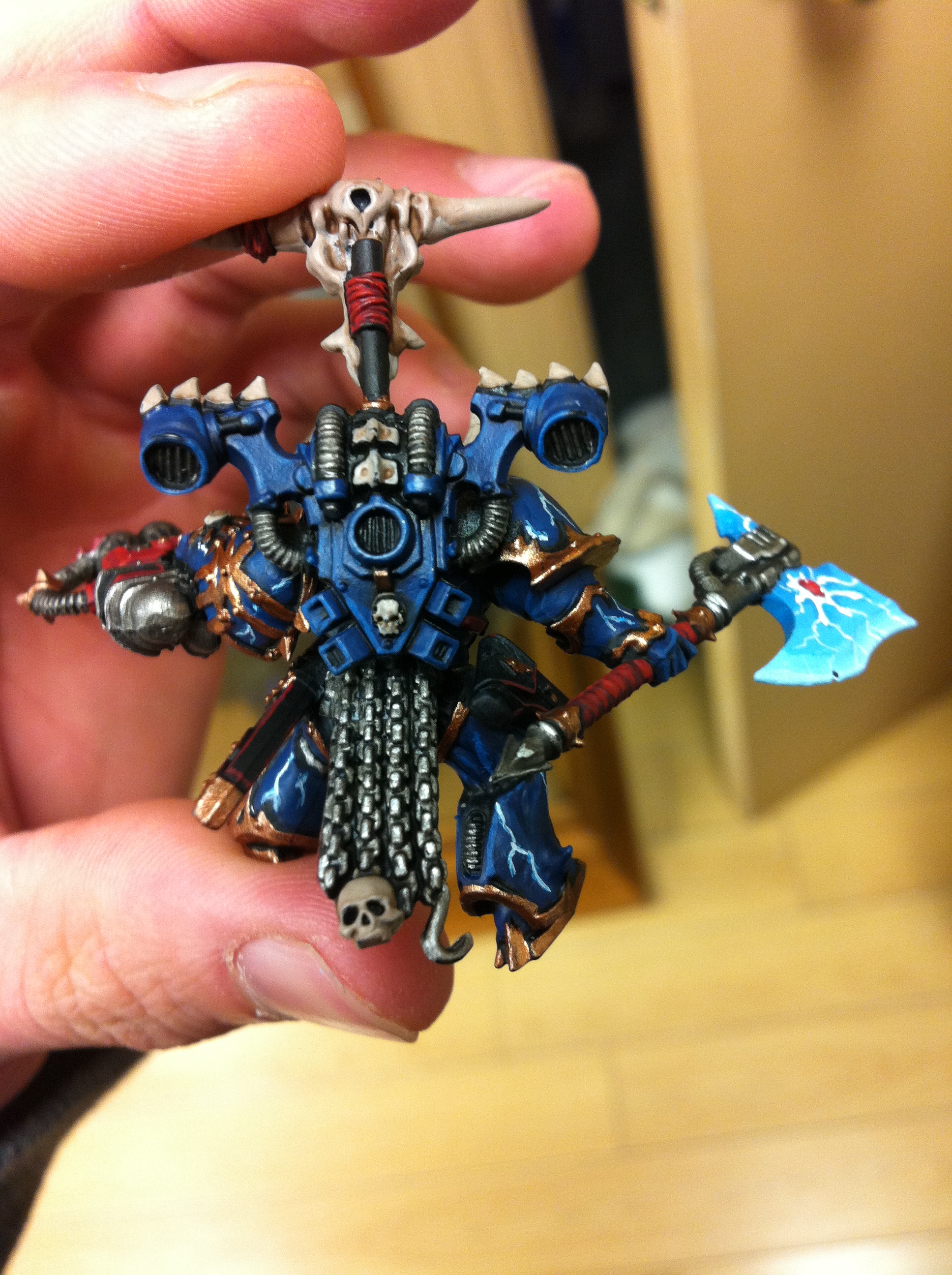 This is my Chaos Lord, yes i know he worships Khorne and that he is a Night Lord, i dont mind that it may or may not agree with everyones opinion on their fluff  I use it for gaming purposes aha. With that said, I had a lot of fun attempting to create my own version of the "burning brand of skalathrax", I hope you enjoy the piece and Ill post updates on mr Juggernaut as I get him painted up  feedback is highly appreciated!