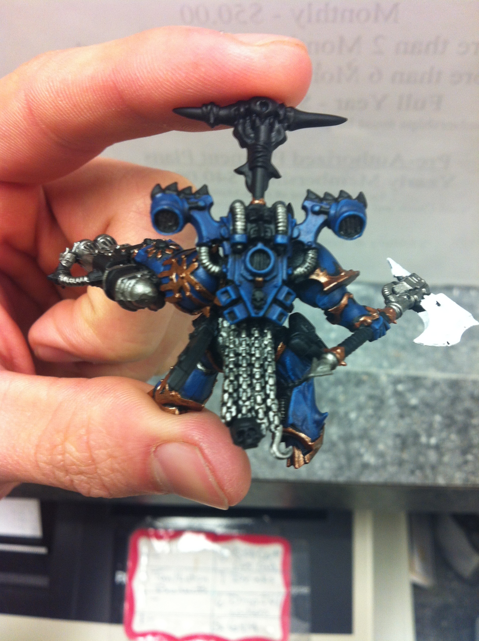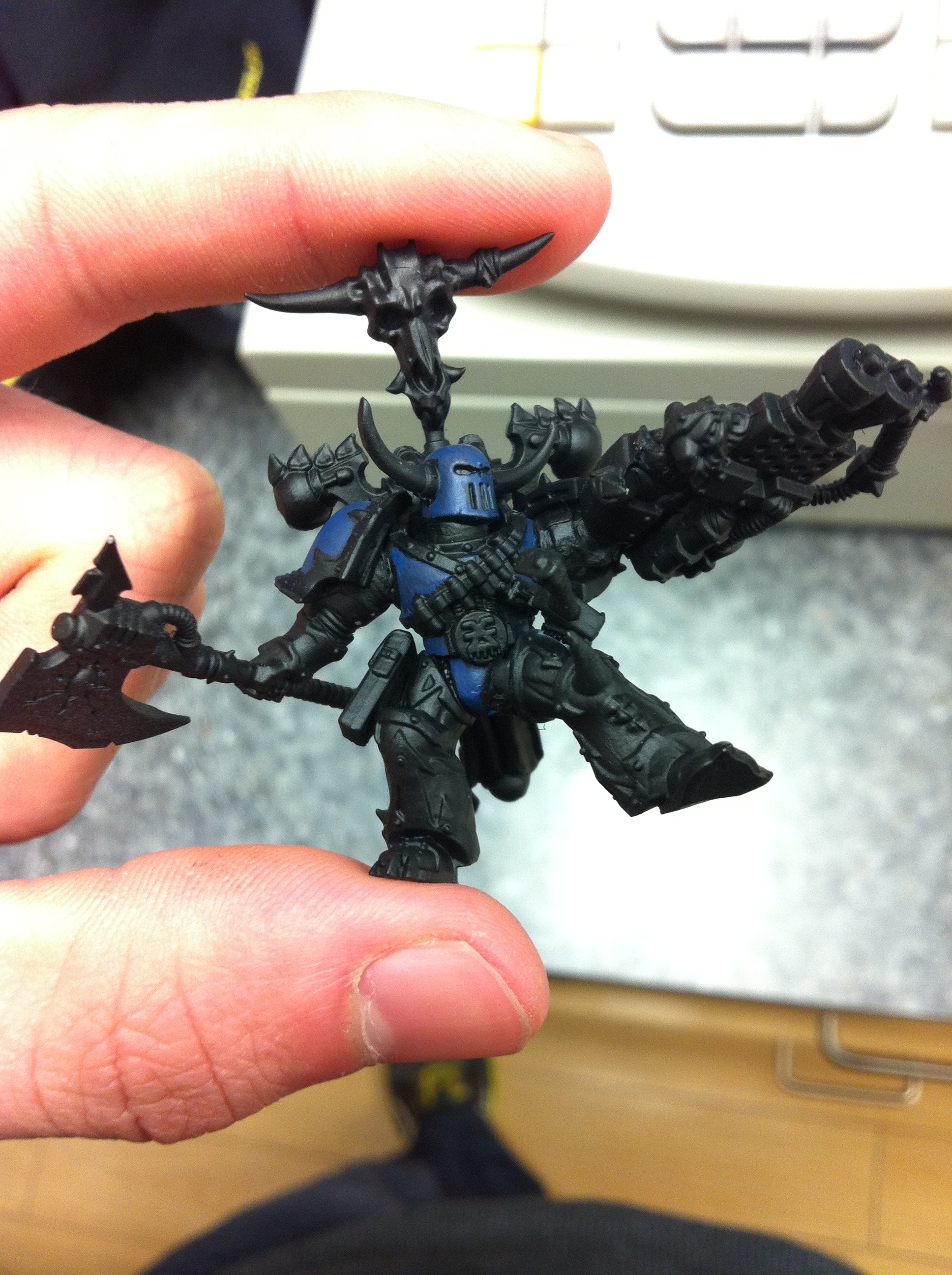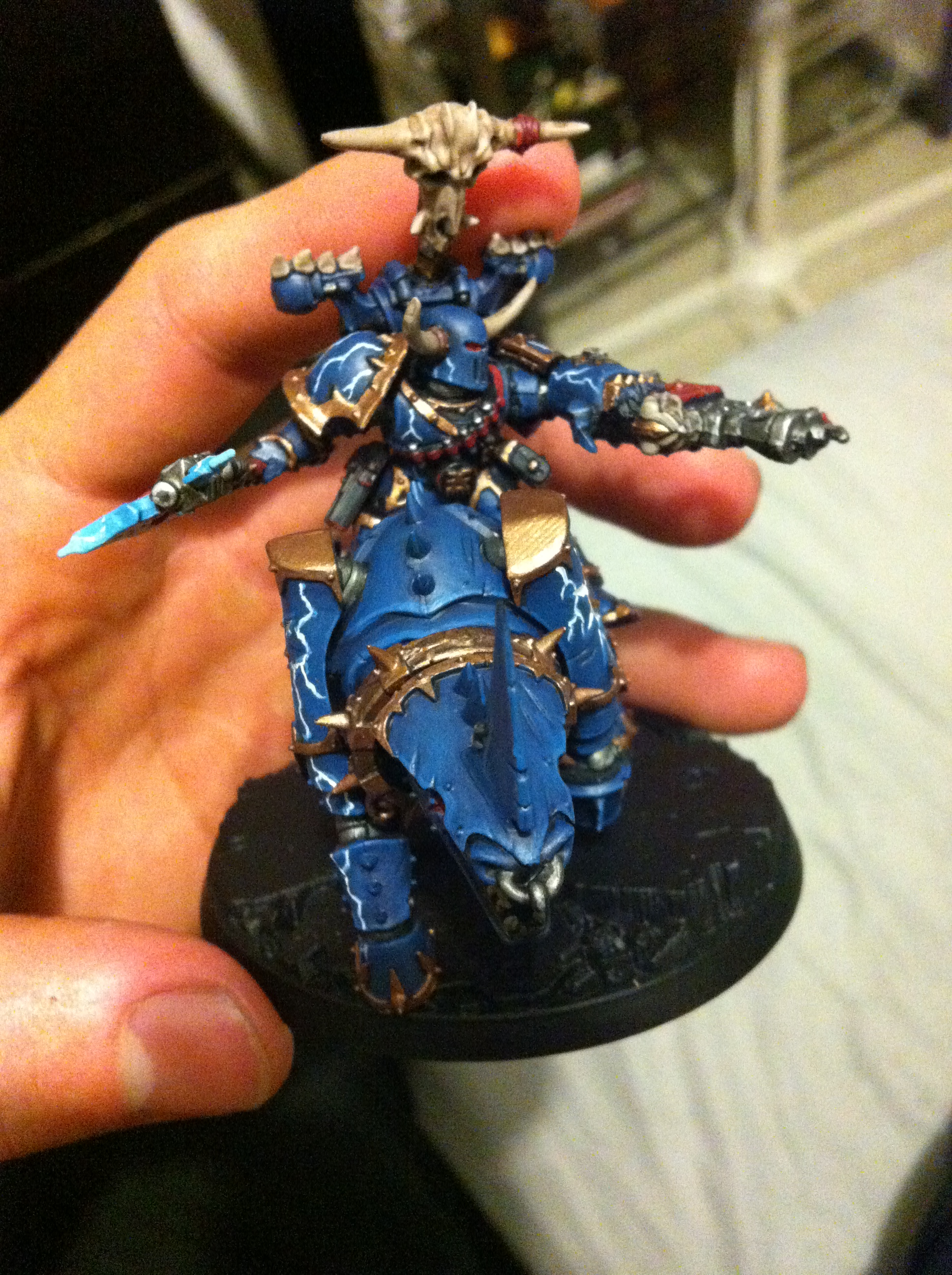 This is my Chaos Lord, yes i know he worships Khorne and that he is a Night Lord, i dont mind that it may or may not agree with everyones opinion on their fluff  I use it for gaming purposes aha. With that said, I had a lot of fun attempting to create my own version of the "burning brand of skalathrax", I hope you enjoy the piece and Ill post updates on mr Juggernaut as I get him painted up  feedback is highly appreciated!