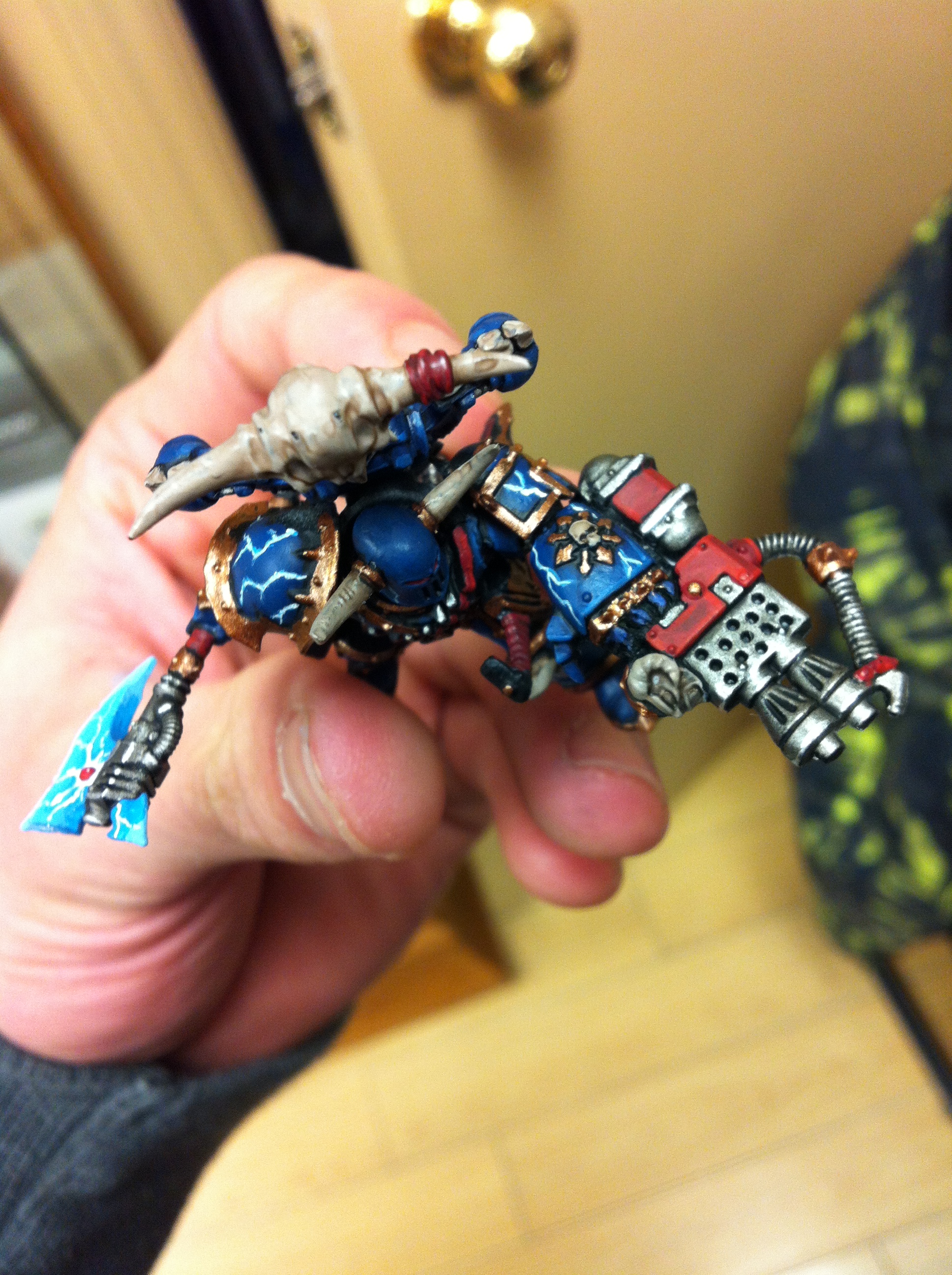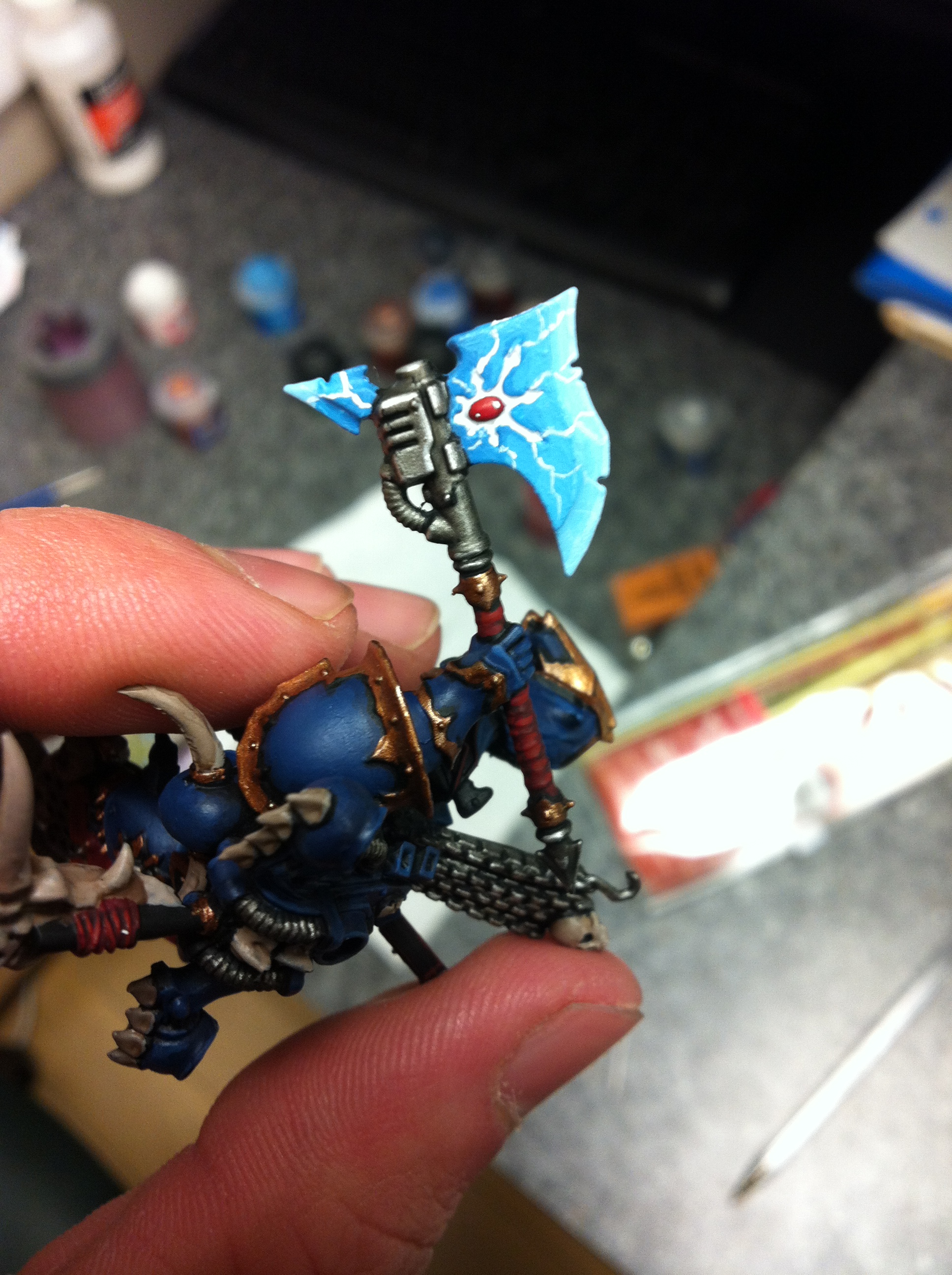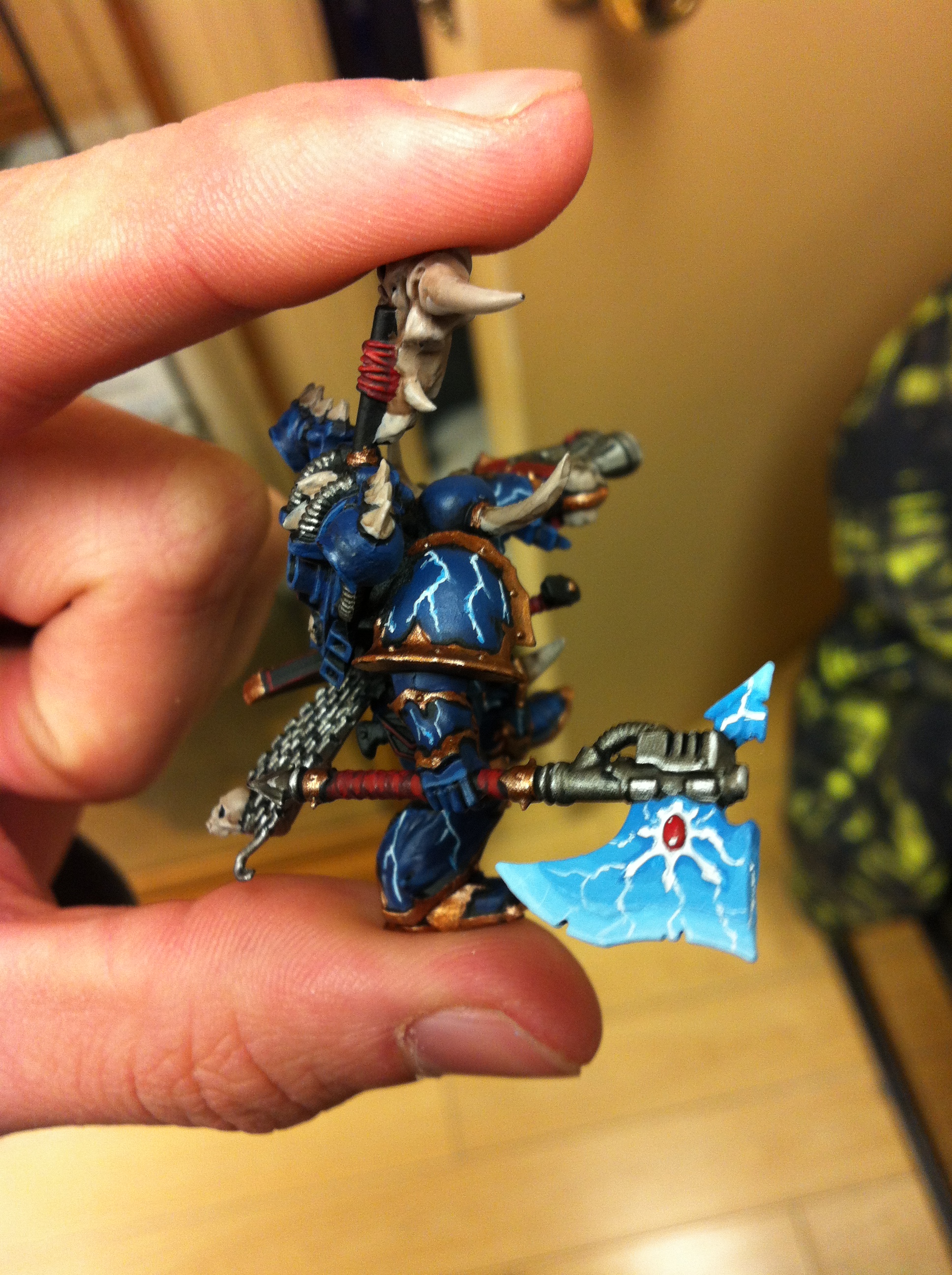 Very nice paintjob and conversion. My only critique is that it looks like you've left some mold lines on the heavy flamer, which for an HQ model that you've clearly put a lot of time into, is a bit of a shame. The lightning and the axe look particularly good by the way!
