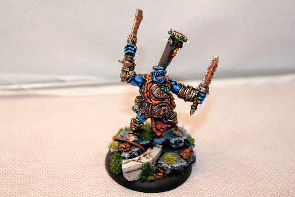 So I want everyone to meet Orgluk Kegslayer, Son to the infamous Warlock. When he realized at a young age he did not possess the Warlock gene he thought he would never be able to make a name for himself in the shadow of his father. Yet during a battle in the north, Borka had to call upon the might voices of the Sons of Bragg and it was when Orgluk saw their prowess in battle and their booming voice did he know what he was destined for. Training himself day and night, and following along with his father, Orgluk found himself able to inspire the Fennblades and Other warriors to fight better, move more swiftly, and get back up when knocked down. Orgluk learned he didn't need to stand out, but just stand up beside his trollkin and defend Kith and Kriel. Walking beside his father and the other heroes of the united kriel, Orgluk would use his voice and his blade to fight back!