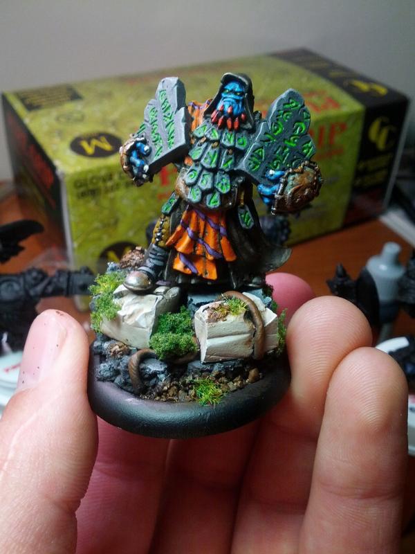 So when i got home tonight i decided i would try and get a decent more done on Orgluk since i am really excited about how he is turning out and i want to get him into the glass case, and a special home in the foam bag (Only finished models get spots in my bags).