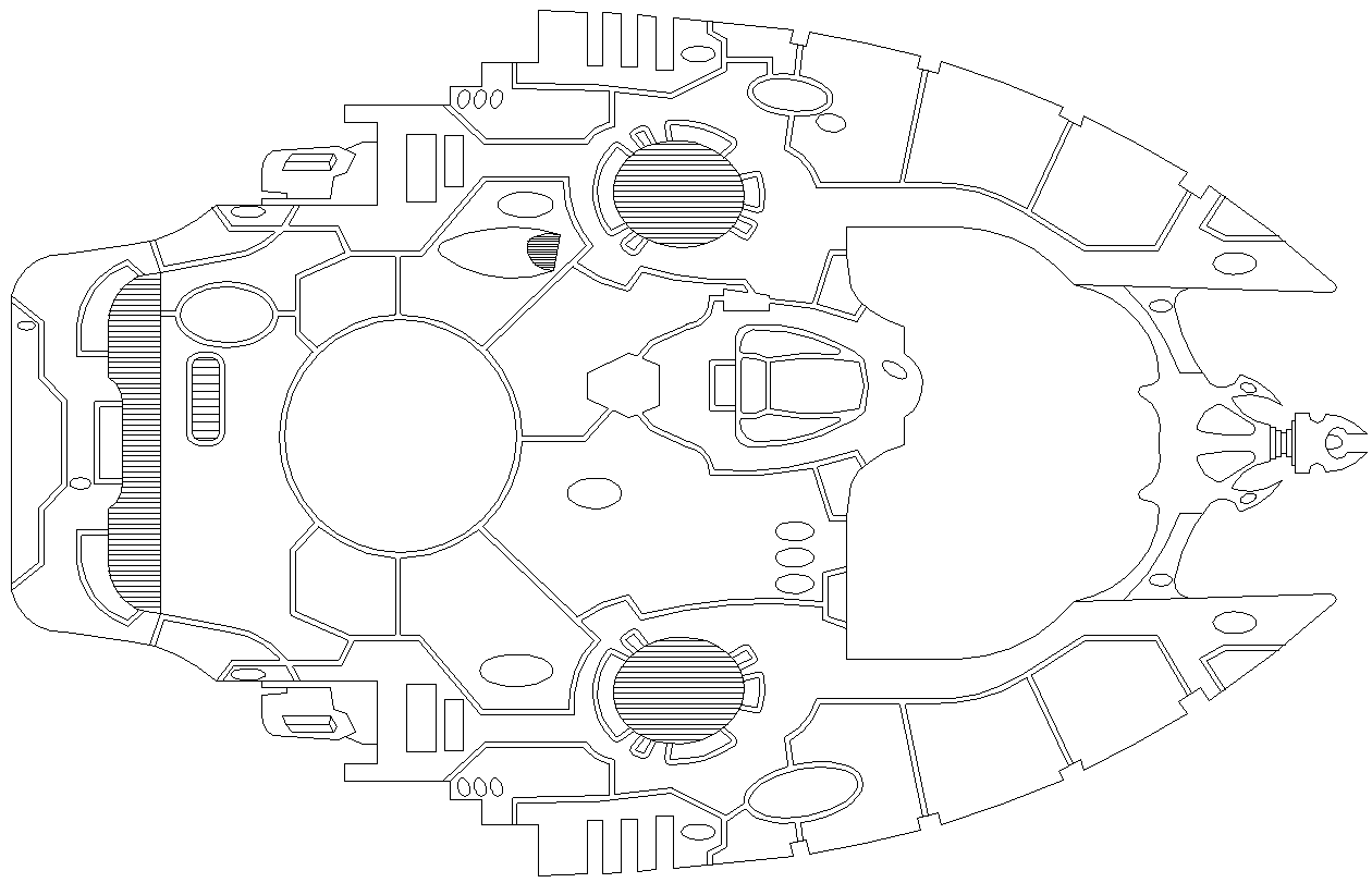 Think of a Starfleet battles SSD, without all of the internal system boxes. Just an outline of the ship.