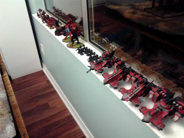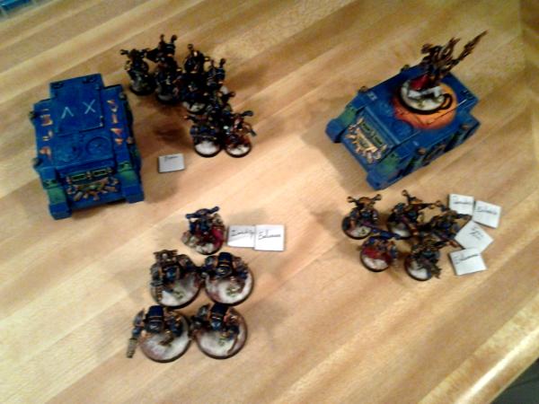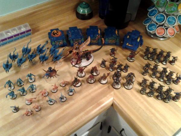 An excellent game against a worthy opponent. I got my ass kicked. At first, the durability of my army was frustrating my opponent, but he eventually pulled out an incredible win. I feel like Purge the Alien puts me at my weakest because I have a loooot of single units like the Maulerfiend and Rhinos. Everything else is pretty durable.