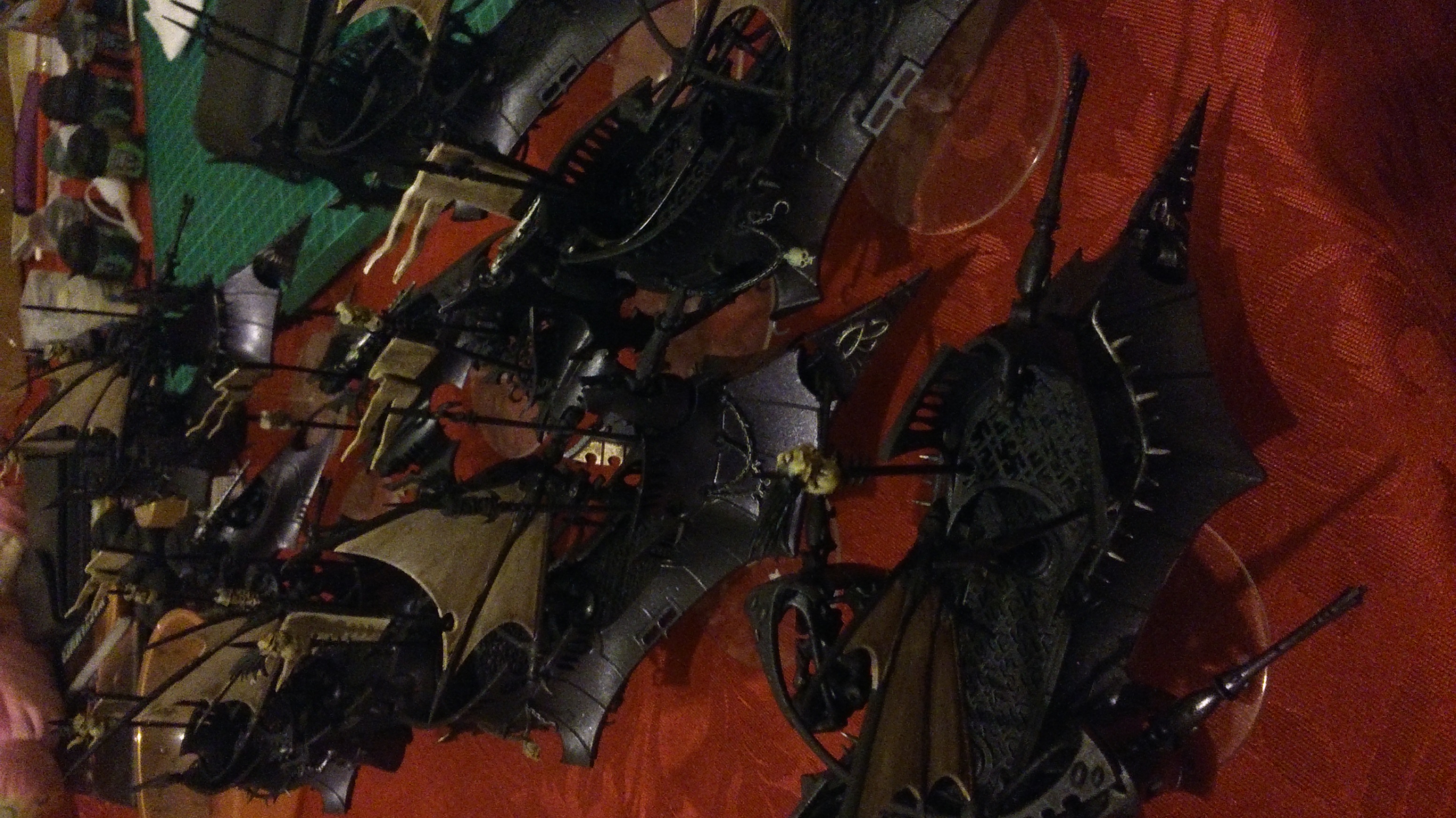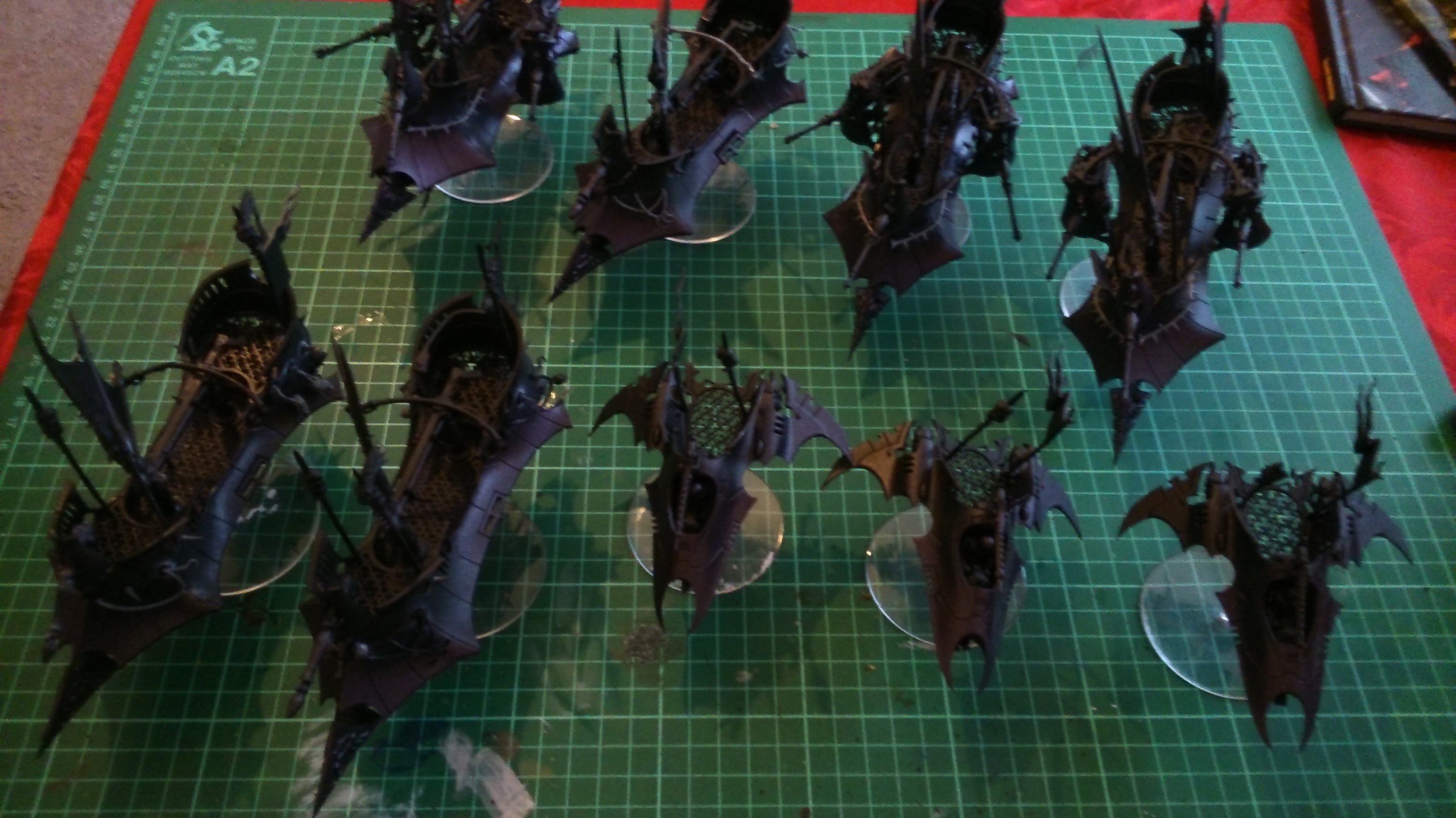 Just started painting my DE army, they have been sat around for months in Finecast, Plastic and Metal shades of grey and so I figured it was time to give them a new lease of life...! I am going for a Black / Purple base for the models but beyond that I have not actually decided what I am going to do. Below are a few pictures of what I have done so far, I will update the thread daily with updates, I would like to keep this going until I am done! I need opinions on Weapon and Helmet colours among other things, I have not decided on a colour yet...! Excuse the mottled effect on the models, it is a mixture of spray paint and my cameras flash reflecting a little bit...! This colour scheme extends throughout the 1850 list onto the vehicles. The 1850 list also includes Eldar Allies in the form of Converted Guardian Jetbikes (on the old Reaver Jetbikes with the blades on the side as I love the way they look), 3 War Walkers, Crimson Hunter and an Autarch on a Reaver or old Harlequin Jetbike (not decided which yet!). The Eldar allies are going to be Black / Blue rather than Black / Purple so they look a little different!