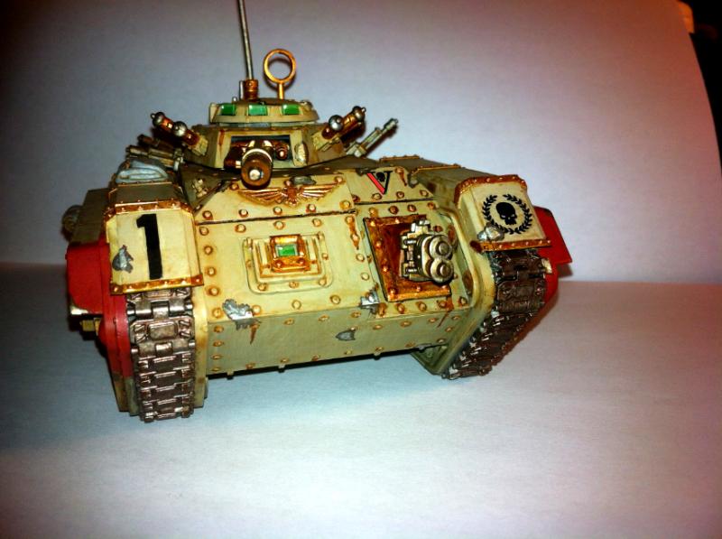 Here's a couple of pictures of my Vostroyan tanks I've painted thus far, I hope they'll give you some inspiration on how to continue to paint your tanks and vehicles up. If you'd like to know how I achieved any of the effects, please let me know and I'll add in a brief explanation.