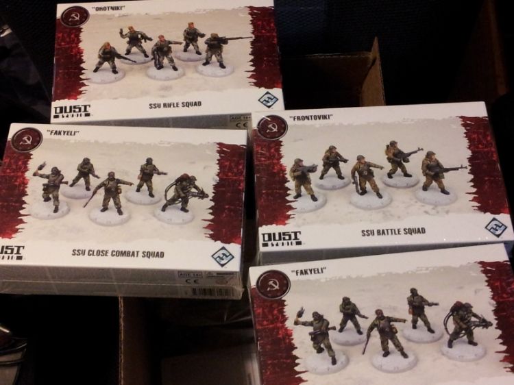 So I recently started my foray into bolt action, as I really like the system as a cheap beer and pretzels game. I love the soviet engineer sappers, as they look really iconic to me. However, I'm rather disapointed with warlord game's engineer sappers, as not only are they metal so repeats are inevitable. But there are options that don't exist, no rifles or lmg's, and there are no blisters available so that means that getting full squads means a slew of spare useless panzerfausts (said non existant option) and flamethrowers. So, I decided to sacrifice some historical accuracy and use some dust tatics models for my engineer themed soviet list. The models are fantastic, and look much better not to mention cheaper if your willing to do some weapon swaps, though there is a ton of mold lines to remove. So without further ado, the beginnings of my army. I just have to wait for amazon.