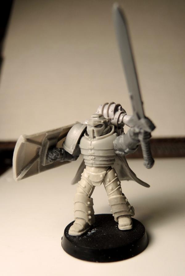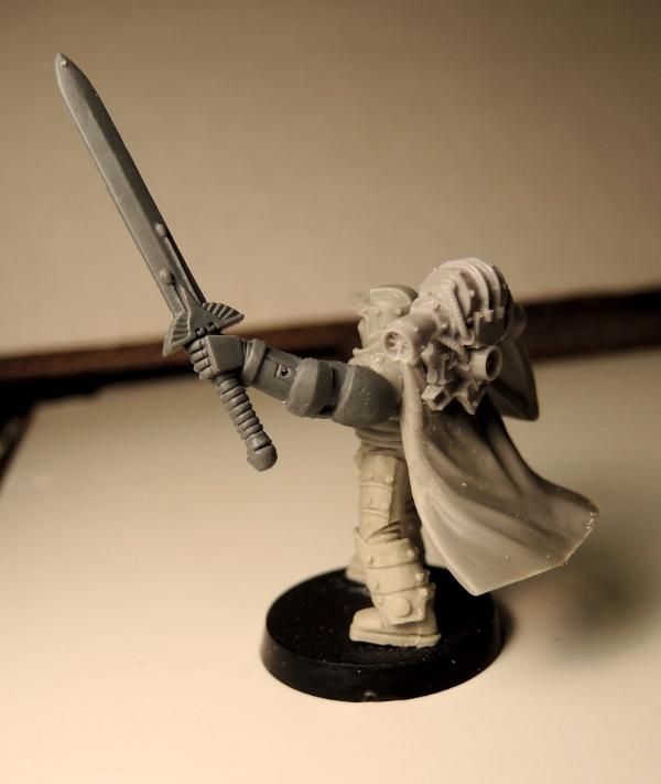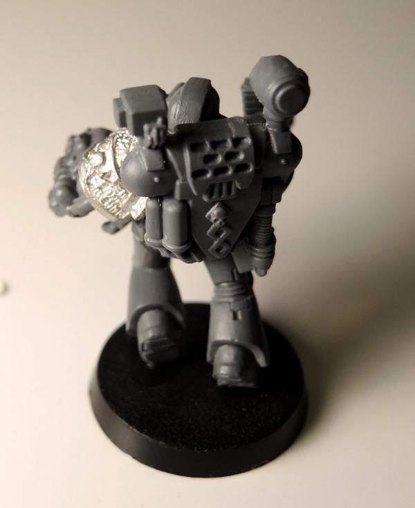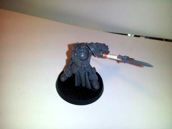 And of course there always has to be a beautiful and unique snowflake player who can't play the same game that everyone else is. This is Brother-Interceptor Camino Veritas of the Grey Knights. He is modeled with a Relic Weapon that he was charged to recover in the beginning of the campaign that he's only now getting around to find. So I've made his model with it in hand so I can hold it over his head that he hasn't gotten it yet. This is another character that I have to make two models for, because after he decided that he absolutely had to get the terminator armor, then he decided he'd rather have some other armor.