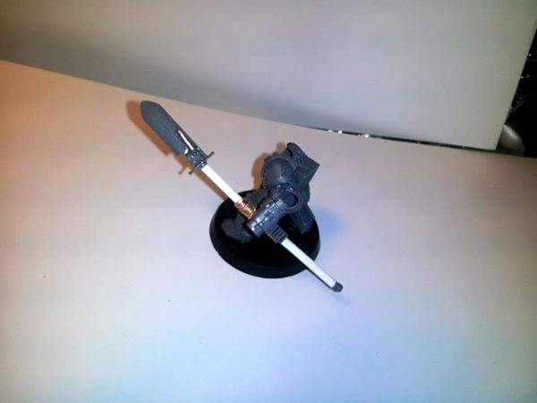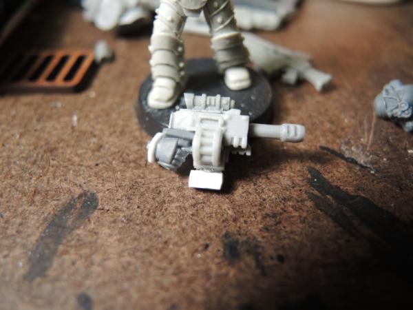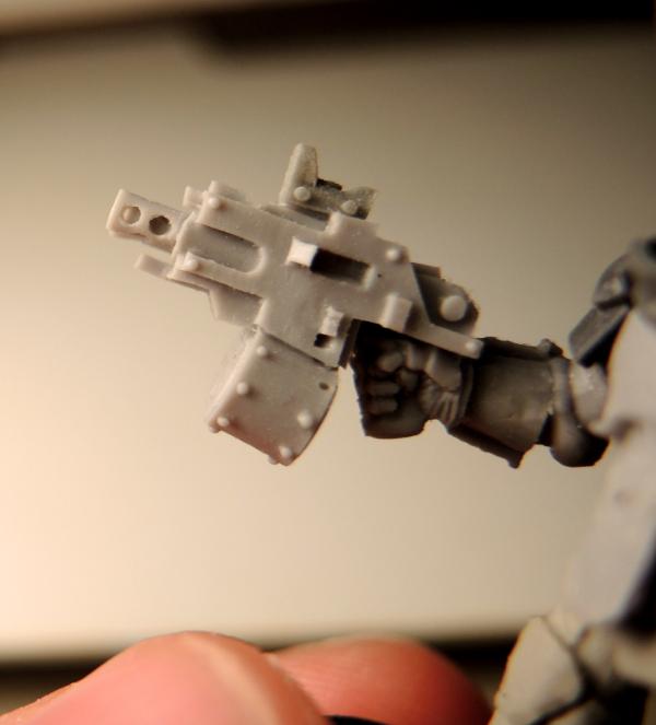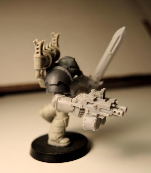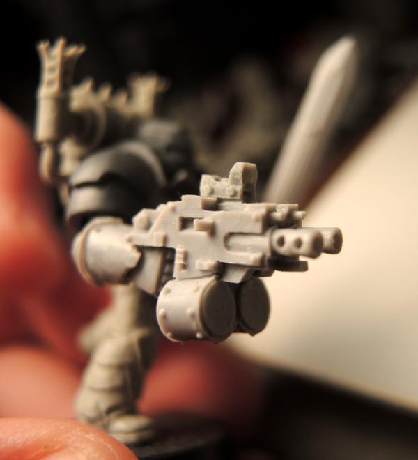 Here is my work in progress job on Yusuf's unique pattern stormbolter. His chapter trappings were his weapons. I decided to call this the Cerberus pattern. His bolter in the above pictures is called the Xerces pattern.