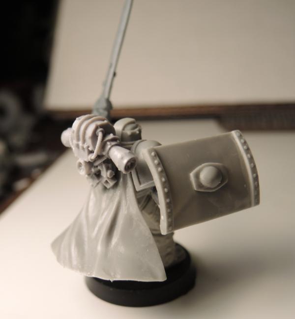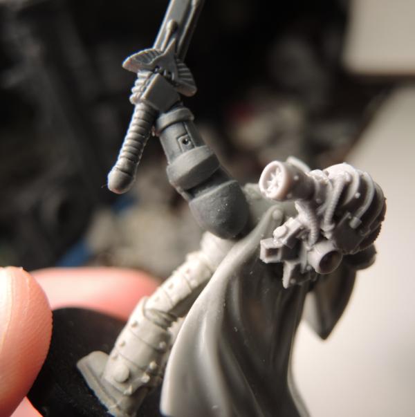 This is Brother-Chaplain Matthias of the Black Templars. He started his career as an assault marine. I will probably make two models for this character, the one below and another in powered armor with a jump pack so that the player has options. We've also made rules for his unique relic - a two-handed crozius arcanum. I'm using a Grey Knight force halberd as the basis of the weapon (the haft and hand holding it, at least. The actual head of the crozius will probably be made of at least 5 other model parts. Pics of that once I start on it. I can't remember who I bought the skull heads from. Puppetswar? Anvil Industries? Anyway, this is what I have so far.