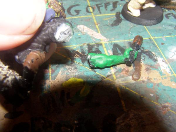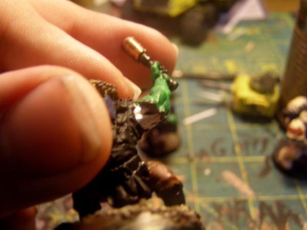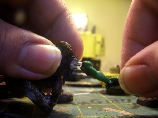 GW plastic Glue or really any other glue I've tried. It's very much like rubber cement, in that once you glue something it will stay glued, but you can pull it apart without causing damage to your mini. Here goes!