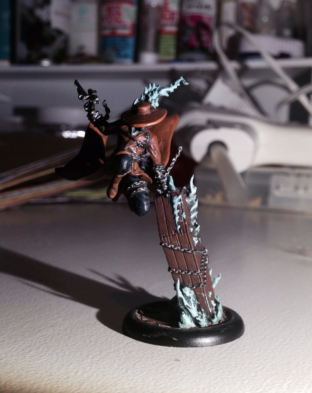 My only painting experience is painting a Dreadball team, so I'm still pretty new. I've been using my Guild's Judgement Crew Box (Malifaux) to really try and develop some technique. I whiffed a bit on blending the trench, but my other half-finished Marshal's coat turned out much nicer for it. At my level, at least, it turns out you can't just step up to the next shade when trying to highlight. 8)