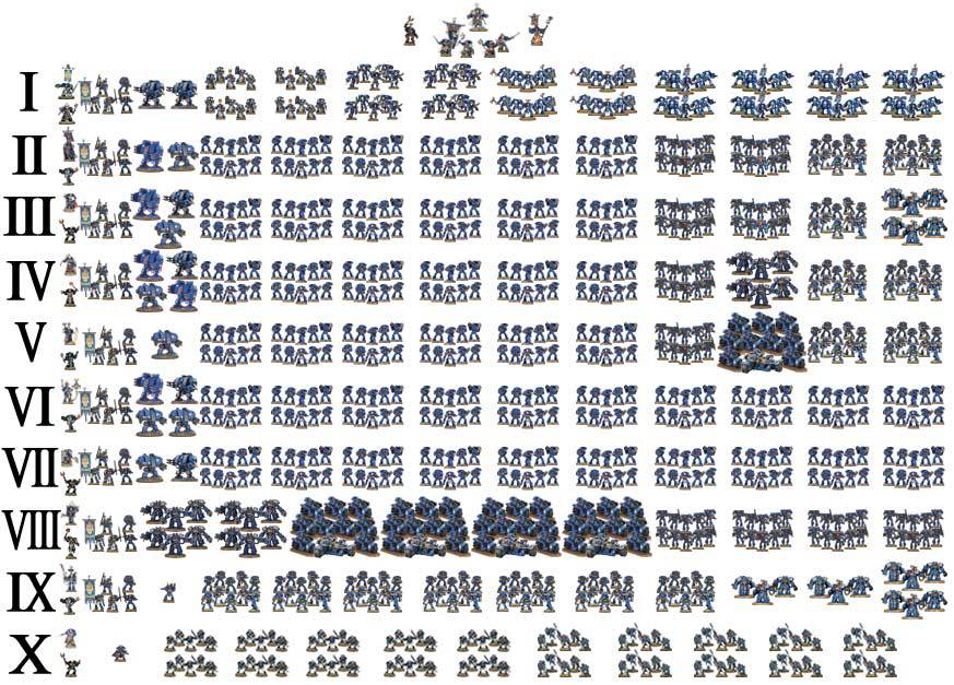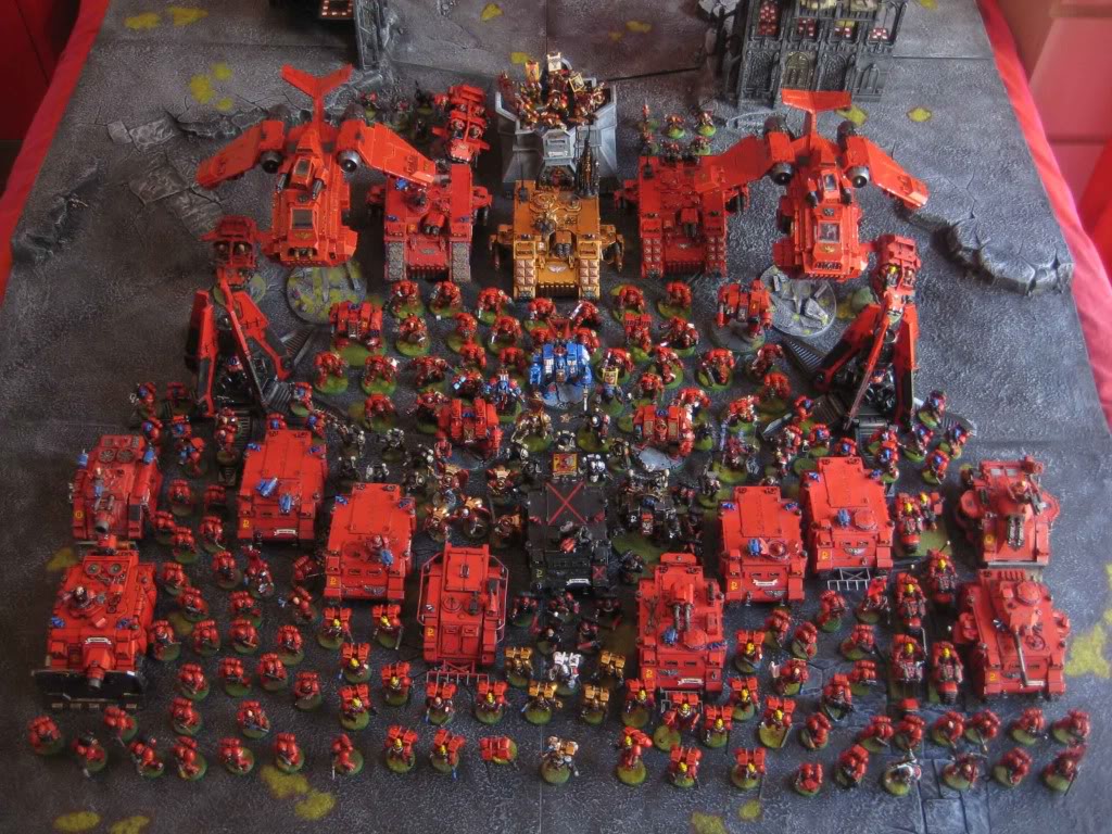 In regards to someone having a complete chapter I do believe ive heard one or two crazy collectors which actually owned a 1000 strong army which included loads of tanks, flyers, special characters etc etc and was fully painted by various artists to complete the collection. Im not sure if these were actually put on for display as like an wonder of the world but im sure you can find on the internet some info about these stories which I remember hearing about. It came to mind that the total cost for this would be no doubt near the 8-12000 pound mark if someone would be thinking of splashing out for that kind of size army. Would be near impossible to transport, would be hardly any opponents to face with similar armies and would take a hell of a lot of time to finish.