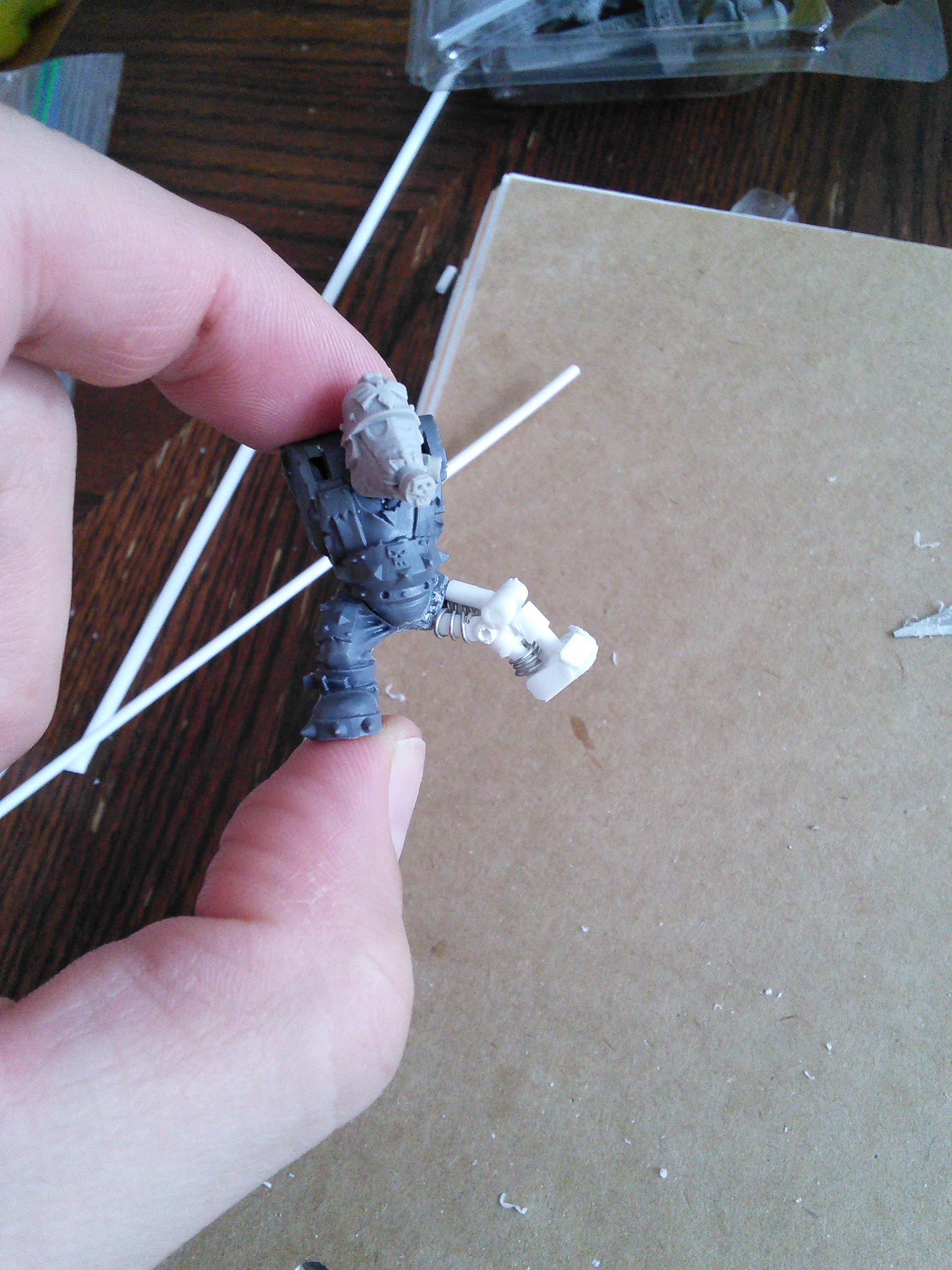 Here is a WIP of my Ork Mad Doc, just finished putting together his bionik leg. Plan on adding more detail to the leg with green stuff. Let me know what you think.