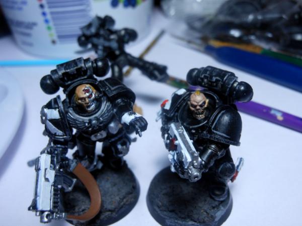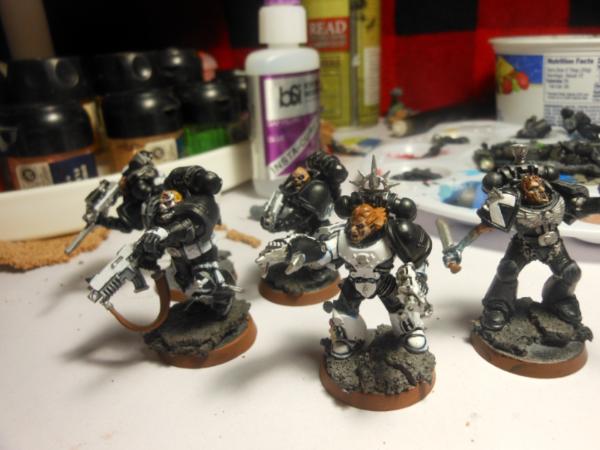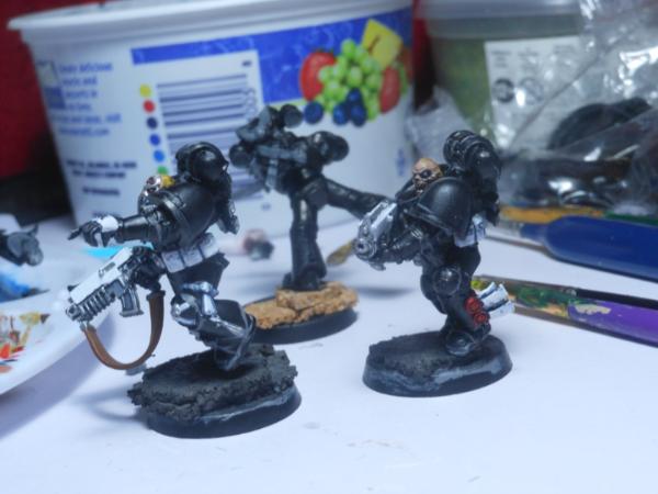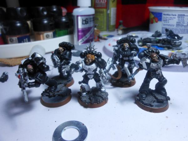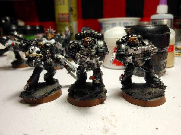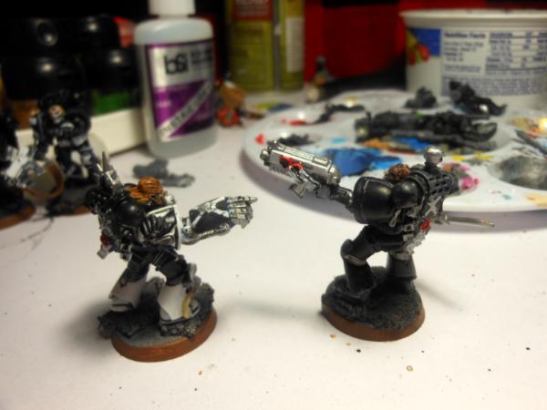 i have 3 more that are almost completed . also i wanted to acknowledge that the guy with the blue metal arm is my take on a much less advanced form of the metal bonding that the Primarch Manus had, again heavily inspired bye Iron Hand, and thou they are using more modern gear they will likely be a fill iun for Heresy gaming .