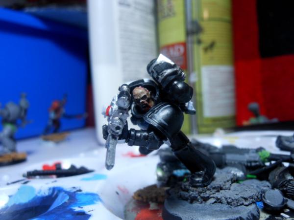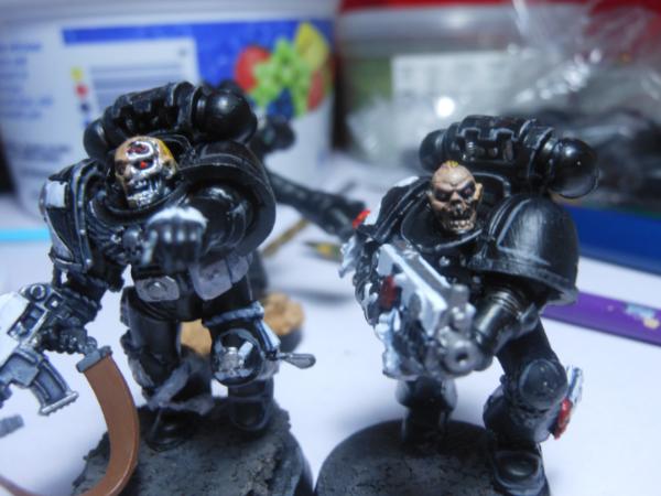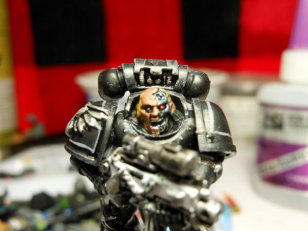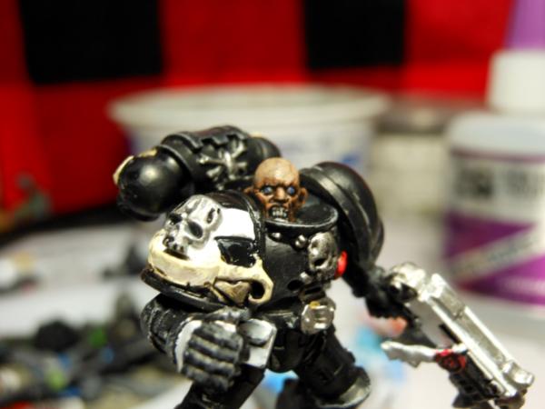No one knows for sure wheatear the Iron Angels are a Gene Seed of the Blood Angels or the Iron Hands and there exploits are almost as misunderstood as they themselves are. They are defiantly loyal to the Imperium of man, but have constant battles with the Dark Angels. There are rumors that they are a small set of Blood Angels that sort out the help of Iron Hand Forge fathers to help them control the thirst and the rage after their beloved Primarch fell. The Forge father built them suits to contain there rage and thirst but there body’s paid a terrible price for the freedom, much of the human aspects of the Iron Angels has been replaced, not with traditional bionics but with cyberbotics, giving there bodies in armor the appearance of normality but the awful truth is that most of their human nature is shriveled up and been replaces with cybernetics to allow them to look normal, the faces of the Iron Angels is there give away as they tend to be sunken in, or all together deformed. No matter the truth a few things are for sure, they have heraldry of the Blood Angels; colors of the Iron Hands, and with each passing year there existence is becoming more and more obvious.