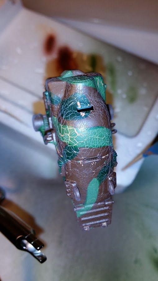 I primed then applied the light tan varnished with a mat. I put on my hairspray and then my camo did my chipping and mat varnished it again and as the varnish dried I ended up with this.