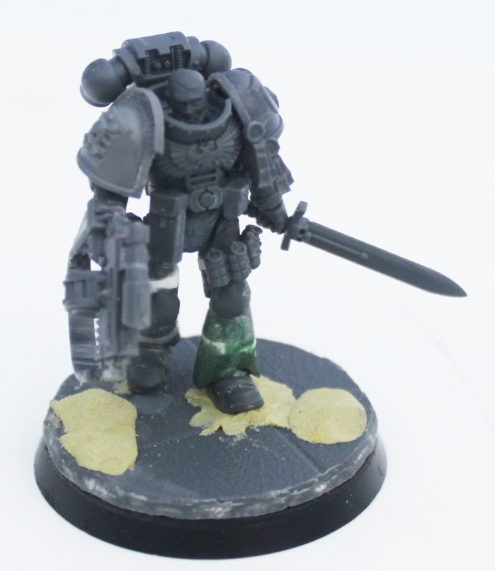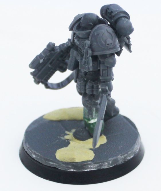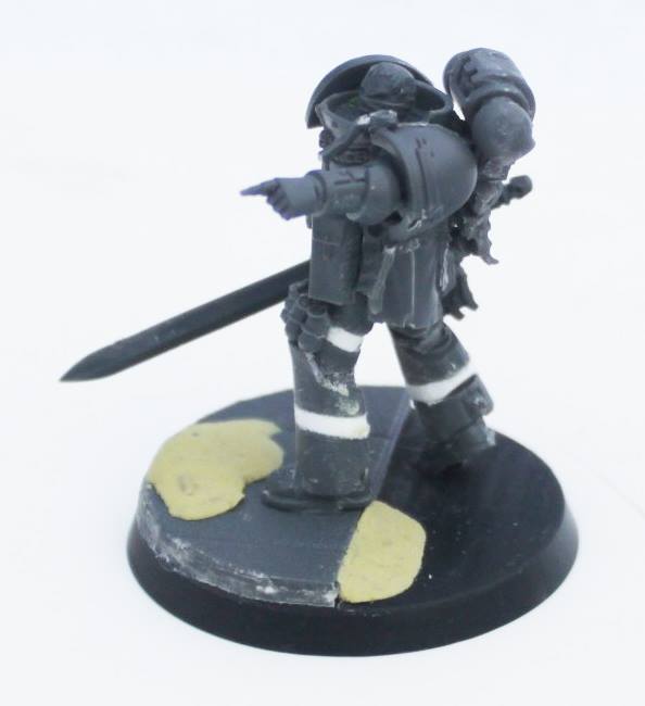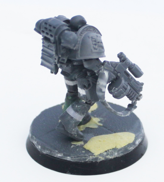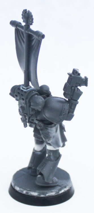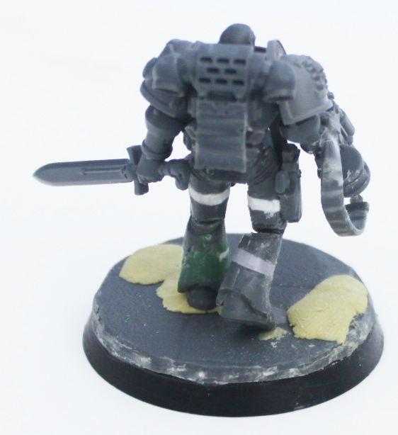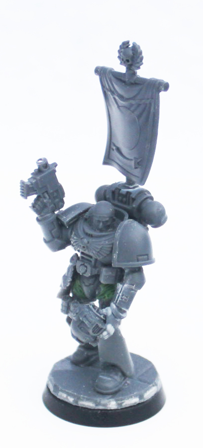As for the model himself, I've got for a superscale for my deathwatch (while truscaling all my other marines). I wanted a fairly commanding but slow and purposeful pose, and I can tell you it was a right turd to get! Straight legs are difficult.