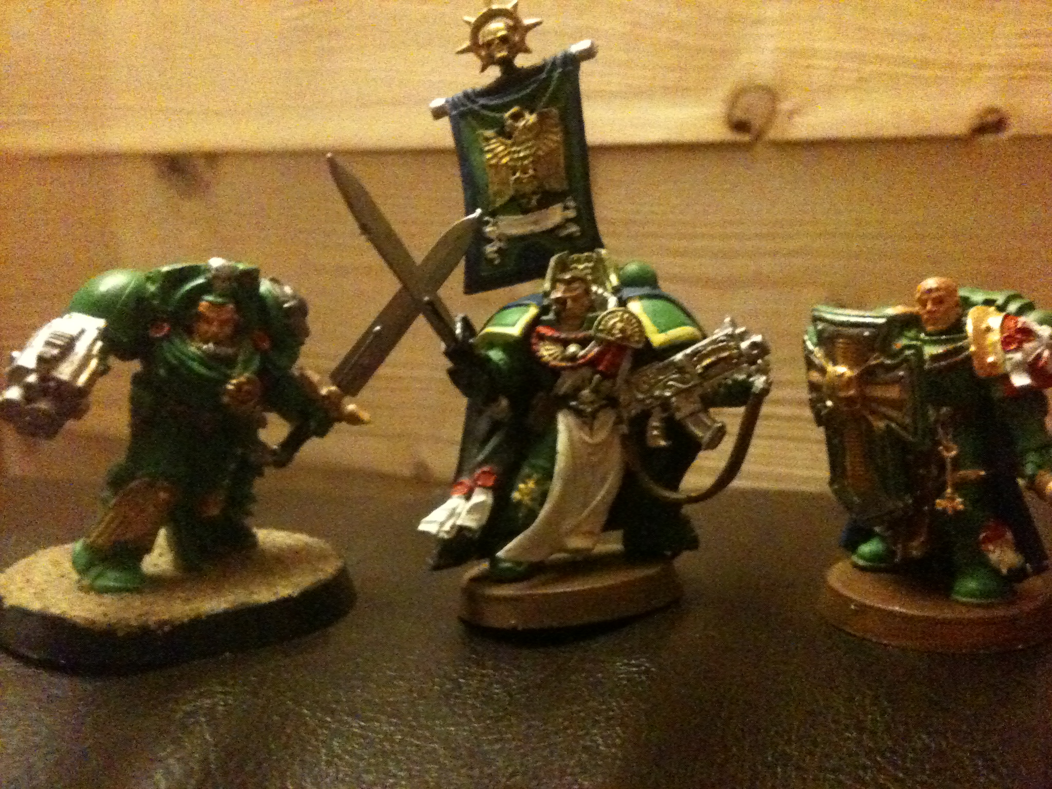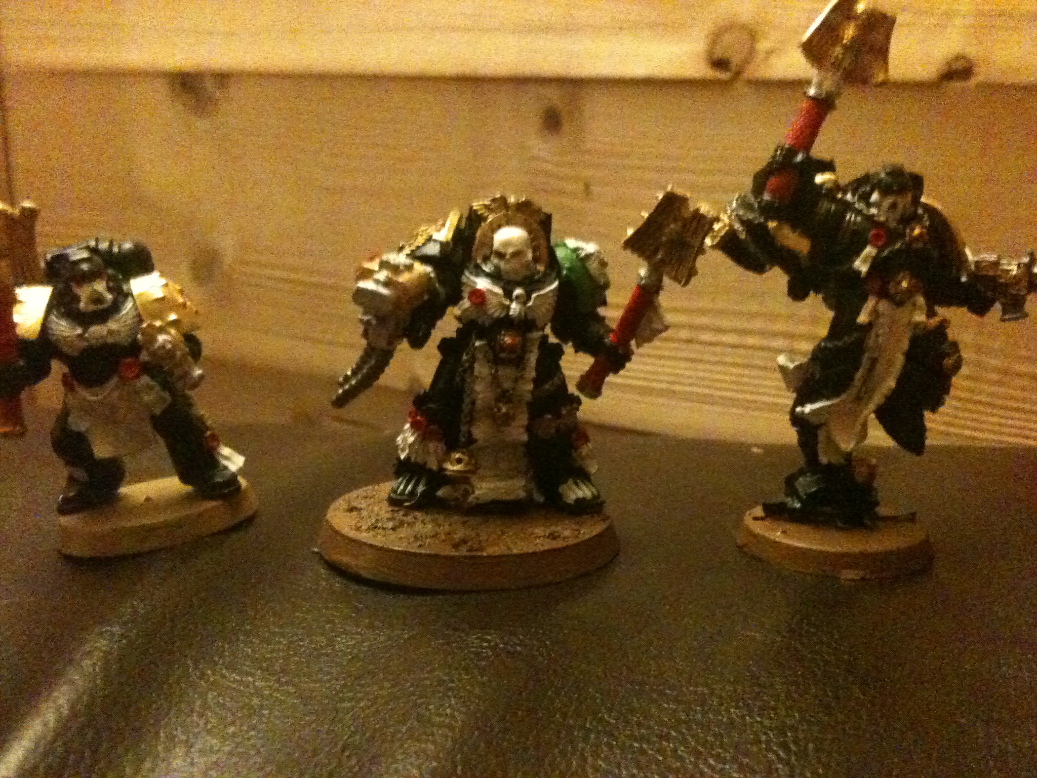 Looks good but the shoulder pad trim on your AOBR Captain is a bit thick, and I agree with Low, they could use a wash or two. I would recommend doing a number of light washes rather than one heavy wash, as it helps to stop the wash getting all shiny and reflective as it did on my old Space Wolves, and it also gives a lot of depth and shading to your currently flat armour and metal. Nice choice of colours though :3