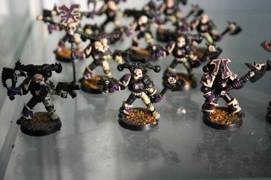 Don't know this is the right forum but I have been reading about how the Khorne Berserker box is so outdated. I agree that a new box would be welcome. However, I was sitting in front of my cabinets with miniatures the other day (I sometimes do that, just looking at my completed miniatures (mad Dutchman, I know)), and spotted my Black Legion army. To say that it is painted....No...I prefer the term "with paint", as it was "painted" in the mid Nineties and I was a rather small lad (age wise, I already was tall). It has Berzerkers. Oldies. Very old. From the time they were made from one piece in glorious metal, had skulls as heads and bare legs;