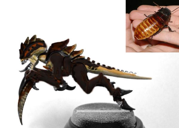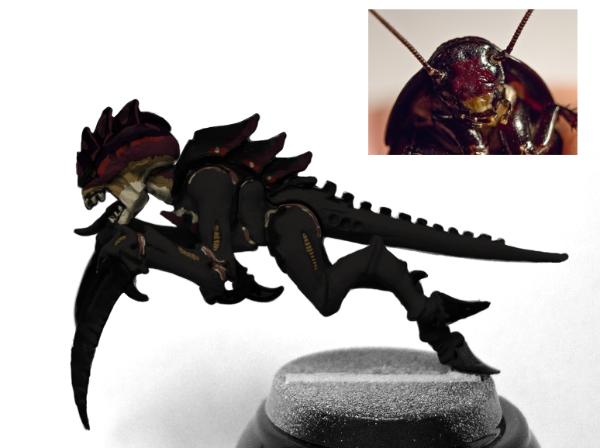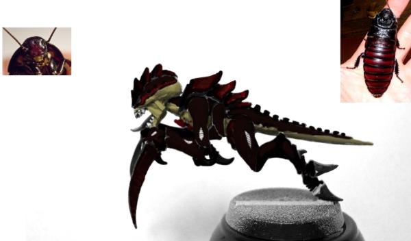 Many of you may recognize this scheme as it is inspired by the tyranids on the 3rd edition codex cover, also kind of mixed with inspiration from insects such as cockroaches