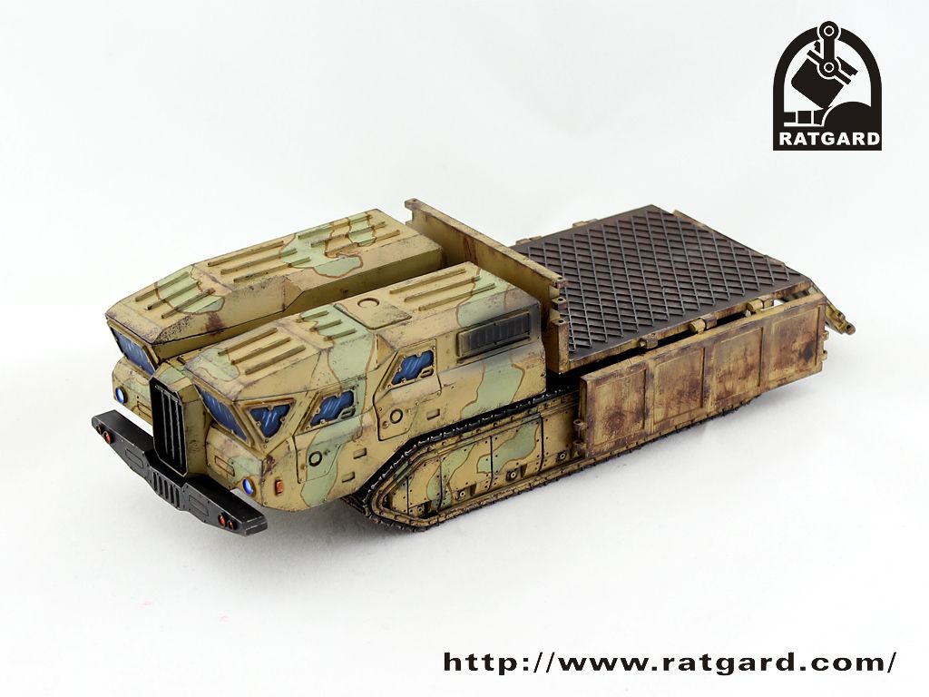 As its name hinted, R.A.T. is a platform of modulrized chassis with unlimited length extension capability- a foundation for an array of 28mm Sc-Fi vehicle variants.