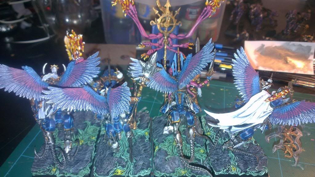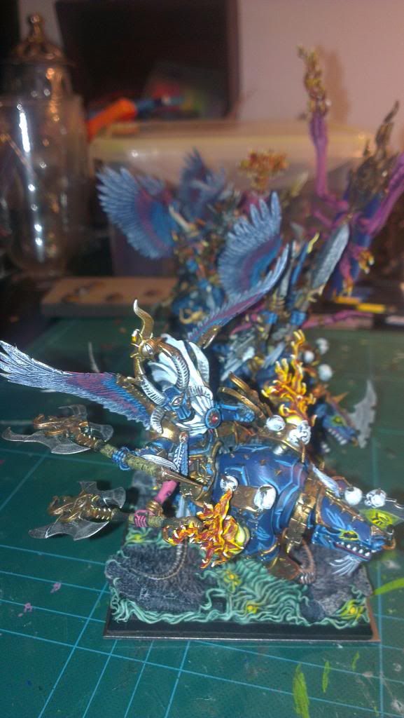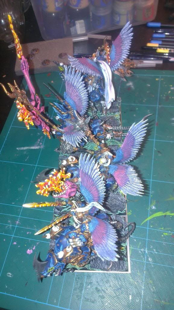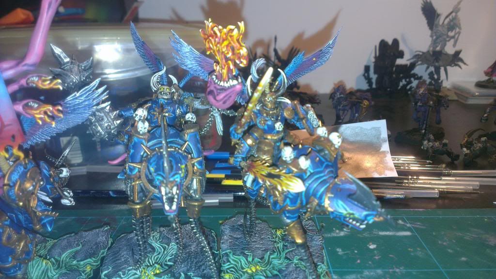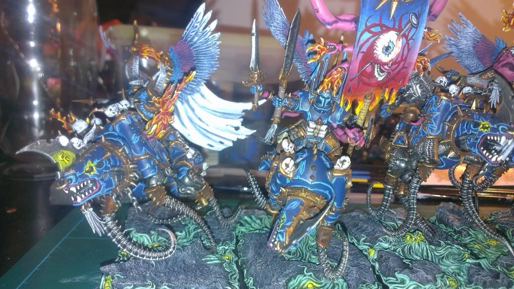 Loving them! You avoid the bland colorless palette I hate so much in Khorne units as well as the disgusting avian features of the Tzeentch ones. Demonic perfection! I really enjoy these.