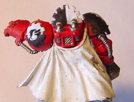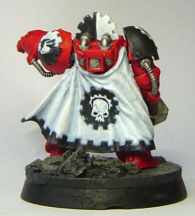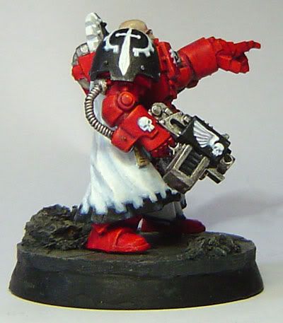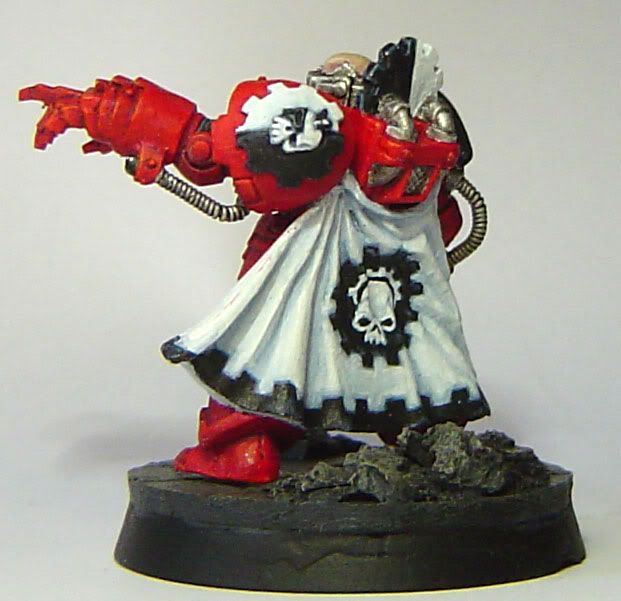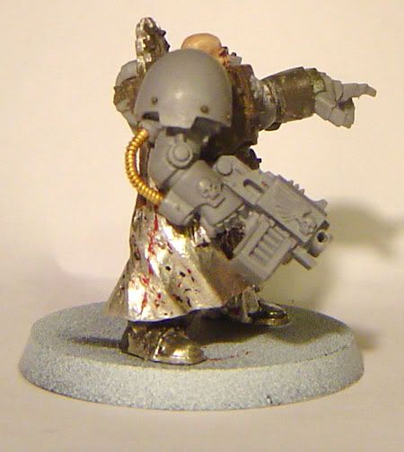 Wow. You do some nice work! I especially like the head/face and the freehand adeptus symbol on the cloak.