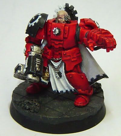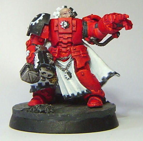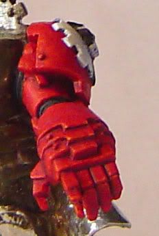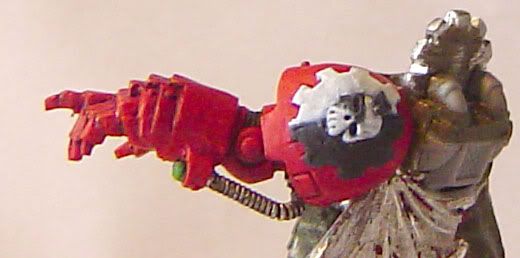 At first glance in the unfinished pics, the green stuff makes it look really dirty, but the painted arm, wow, just sweet and crisp and clean. A giant red powerfist to boot. My marines would probaly have to steal that from him.