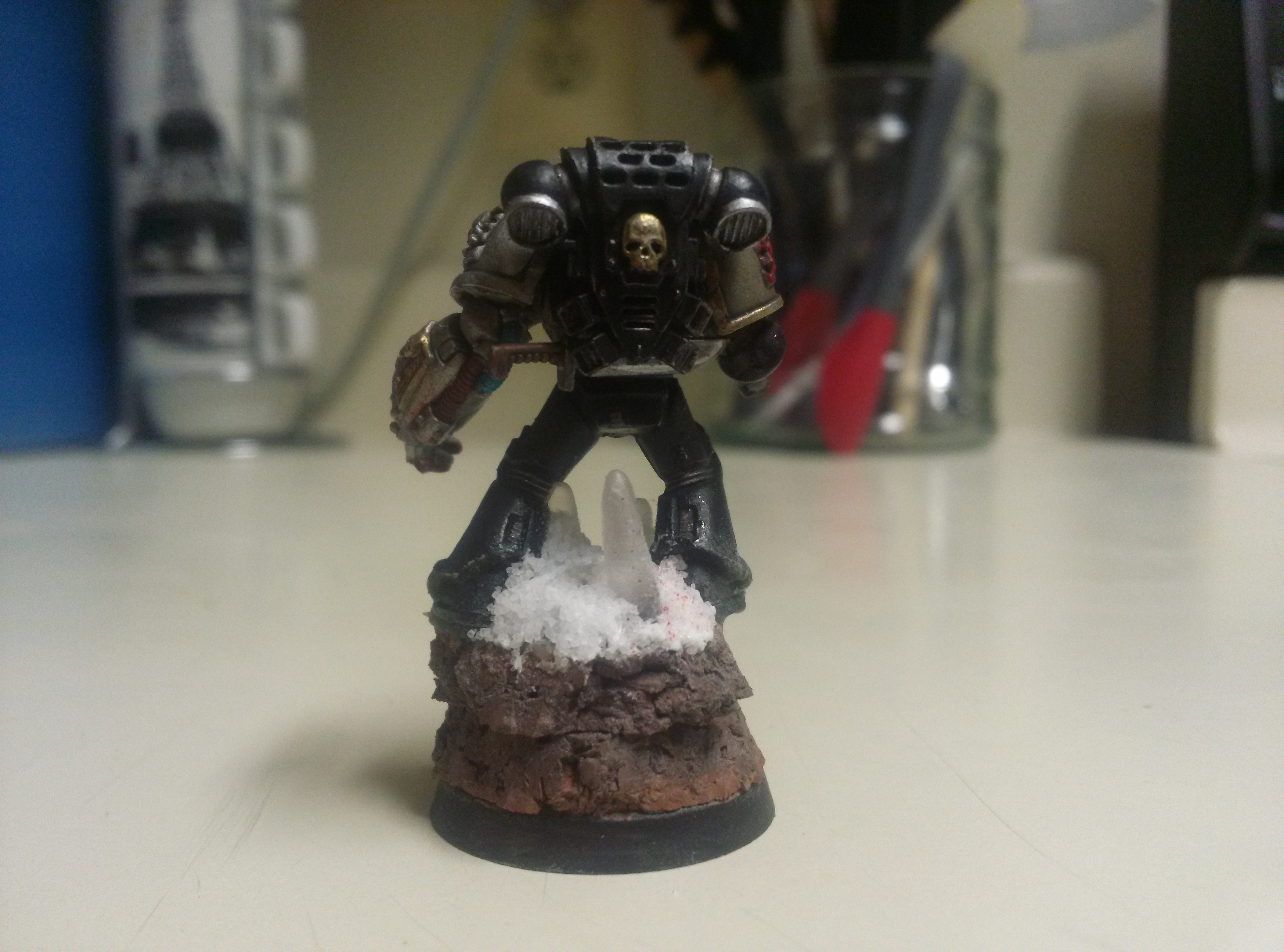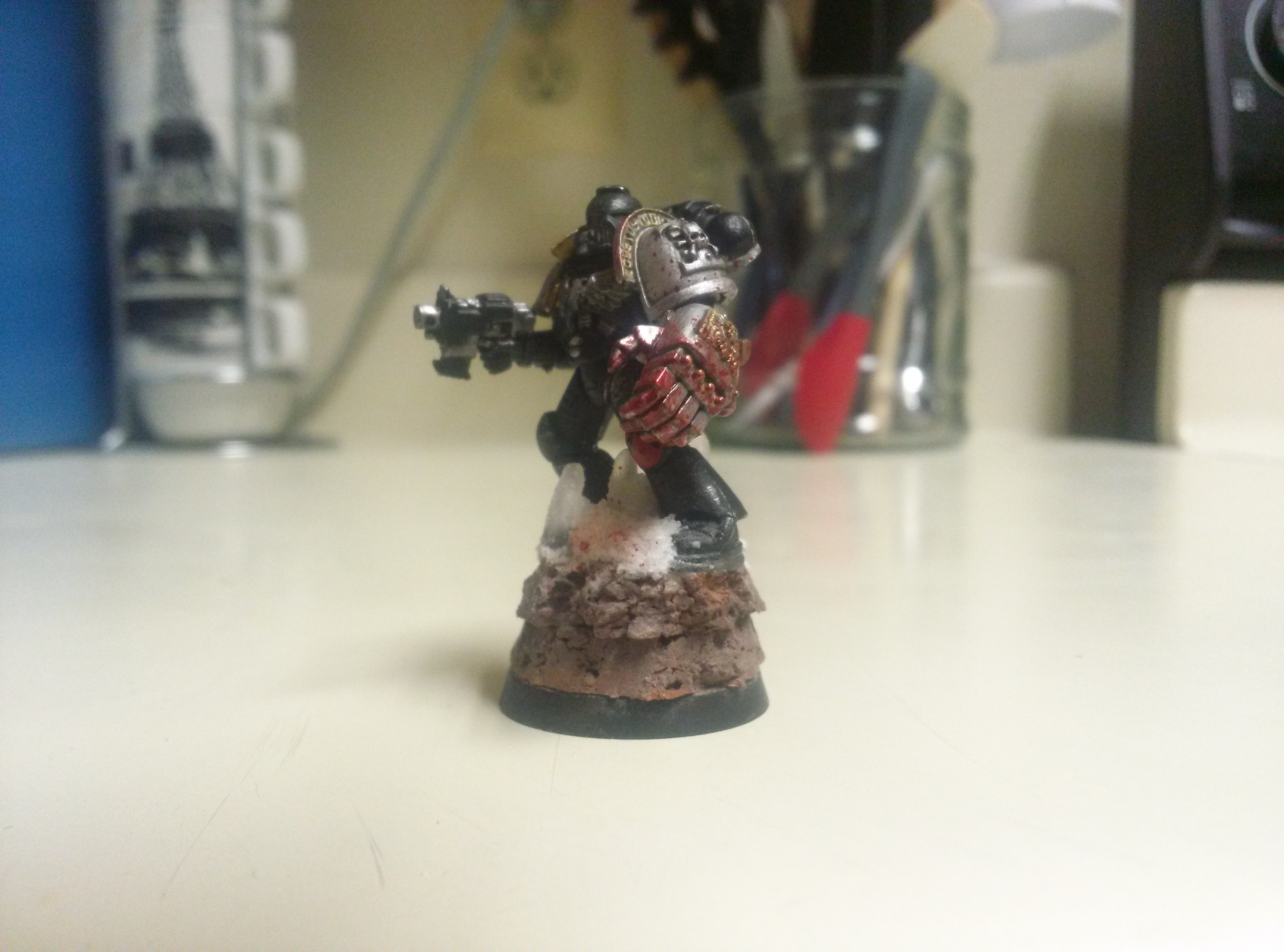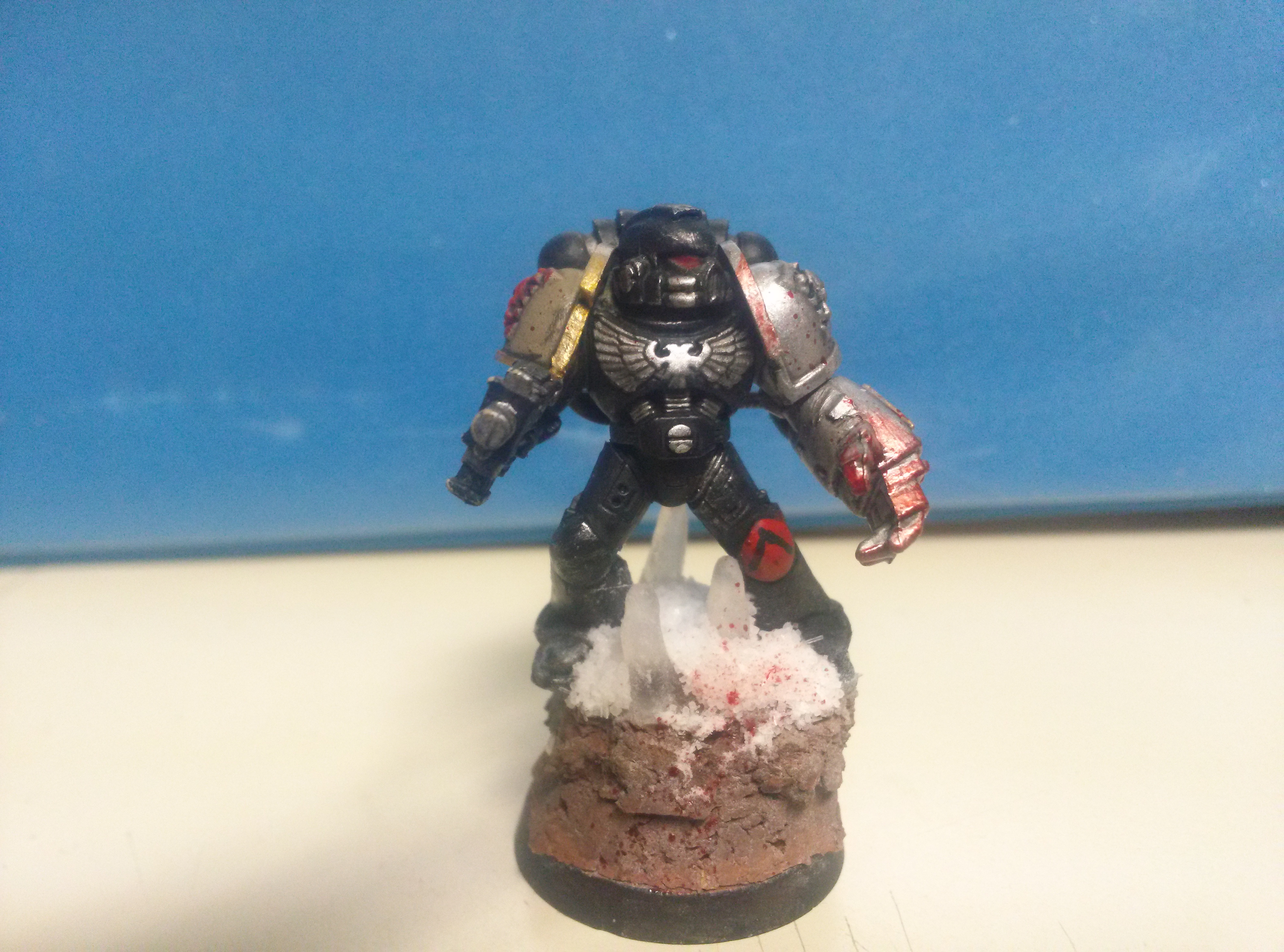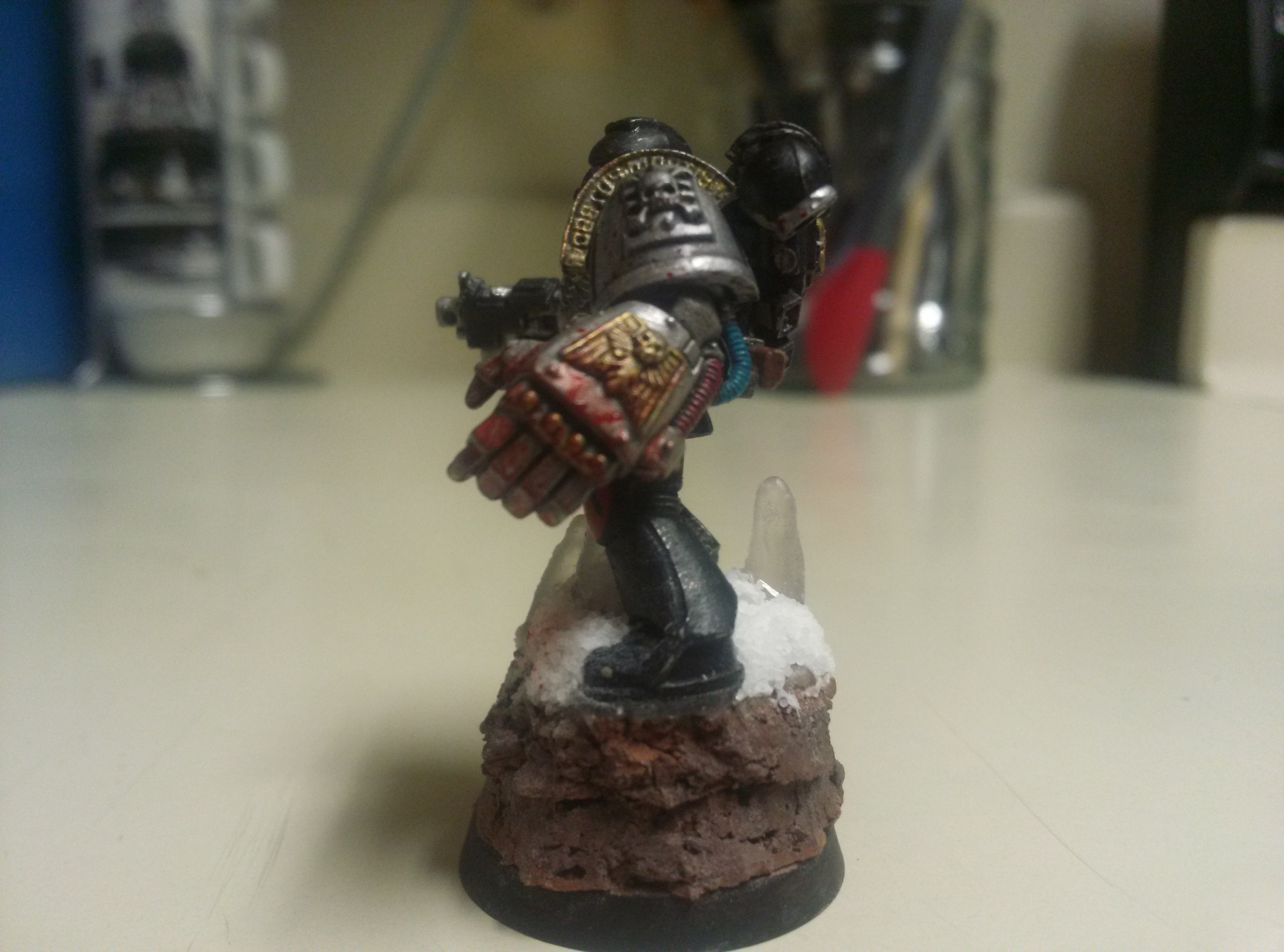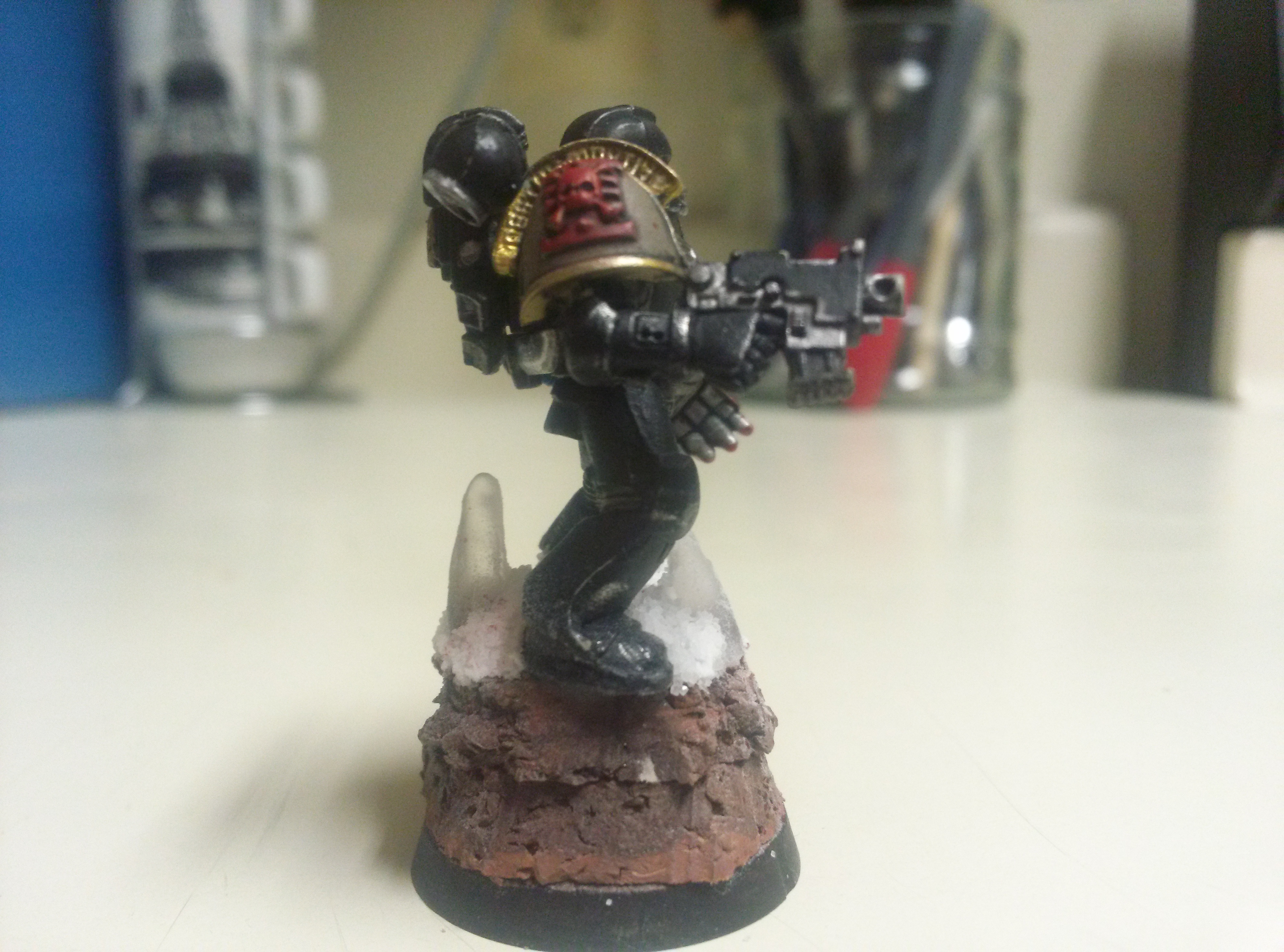 My only criticism is that universally Deathwatch either have their right shoulderpad as the colours and design that it typically would be in their chapter (so with Ultras the white icon over blue) OR completely black to show they're a relatively permanent part of the Deathwatch, either by exile, or joining, or etc.