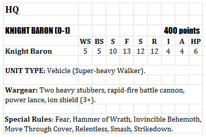 Given the new fluff Baron might just be an upgrade available to certain Knights.