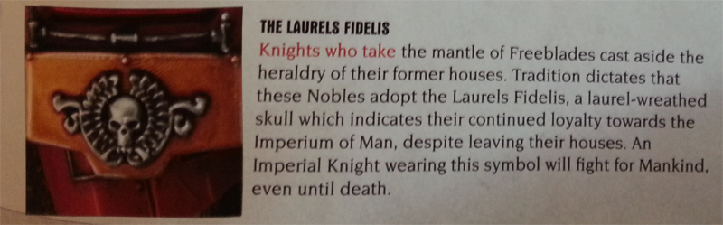 So then the imperial eagle knights AND the ones wearing the Laurels Fidelis are both loyal to the Imperium? So they never had a "house" symbol on there, always an Imperial Eagle or Laurels Fidelis depending on if they were Imperial Knights or Freeblades?