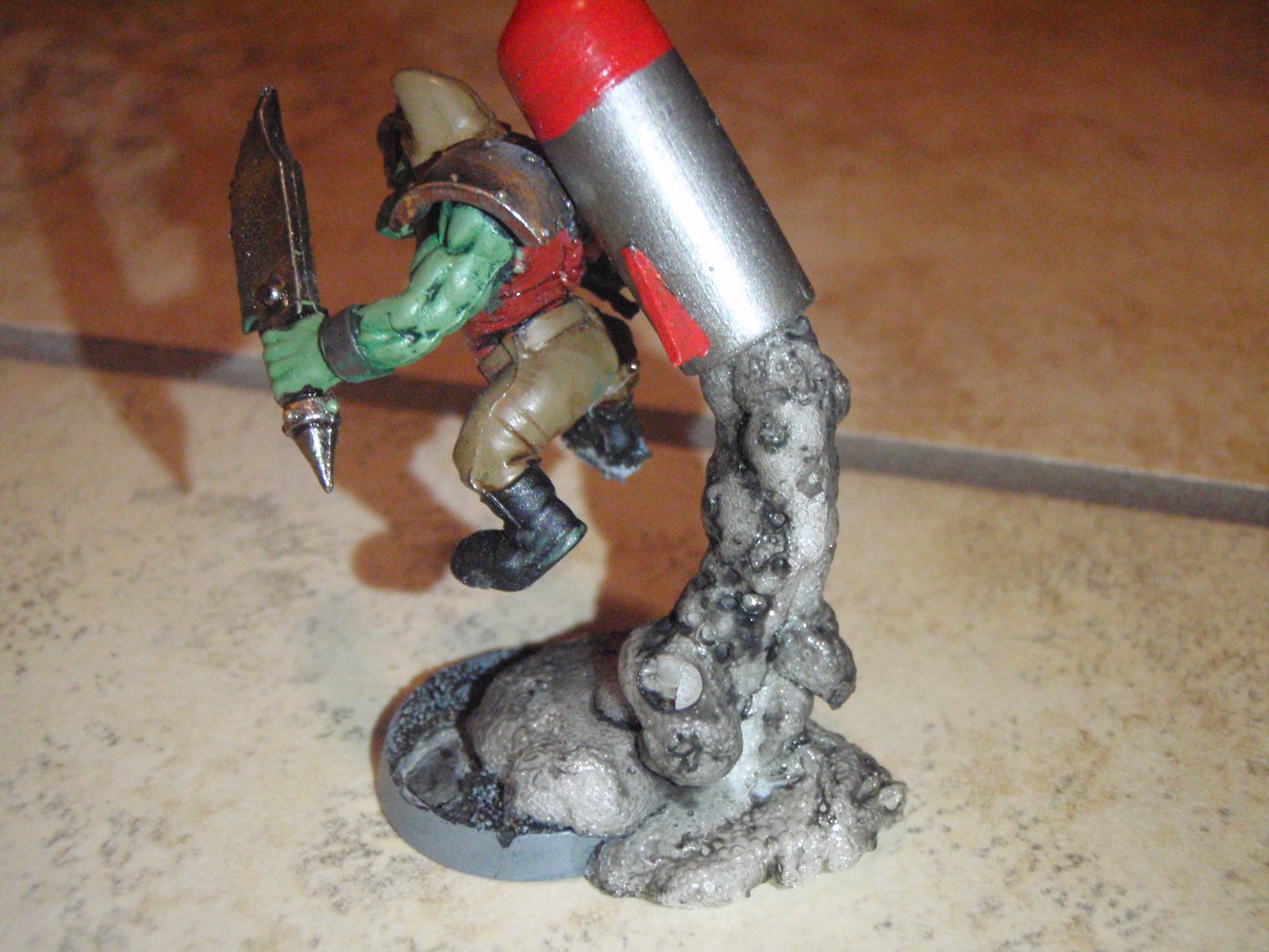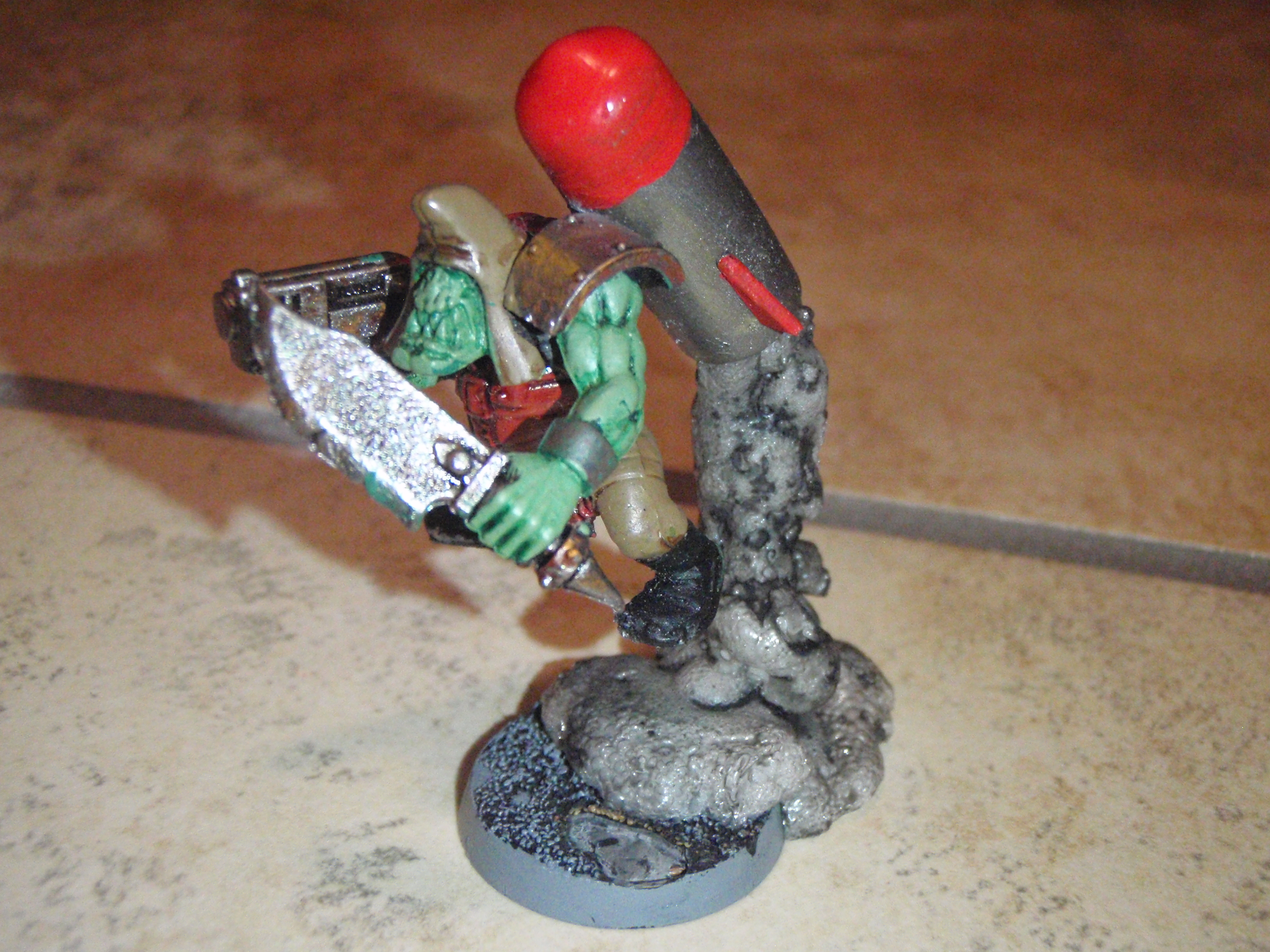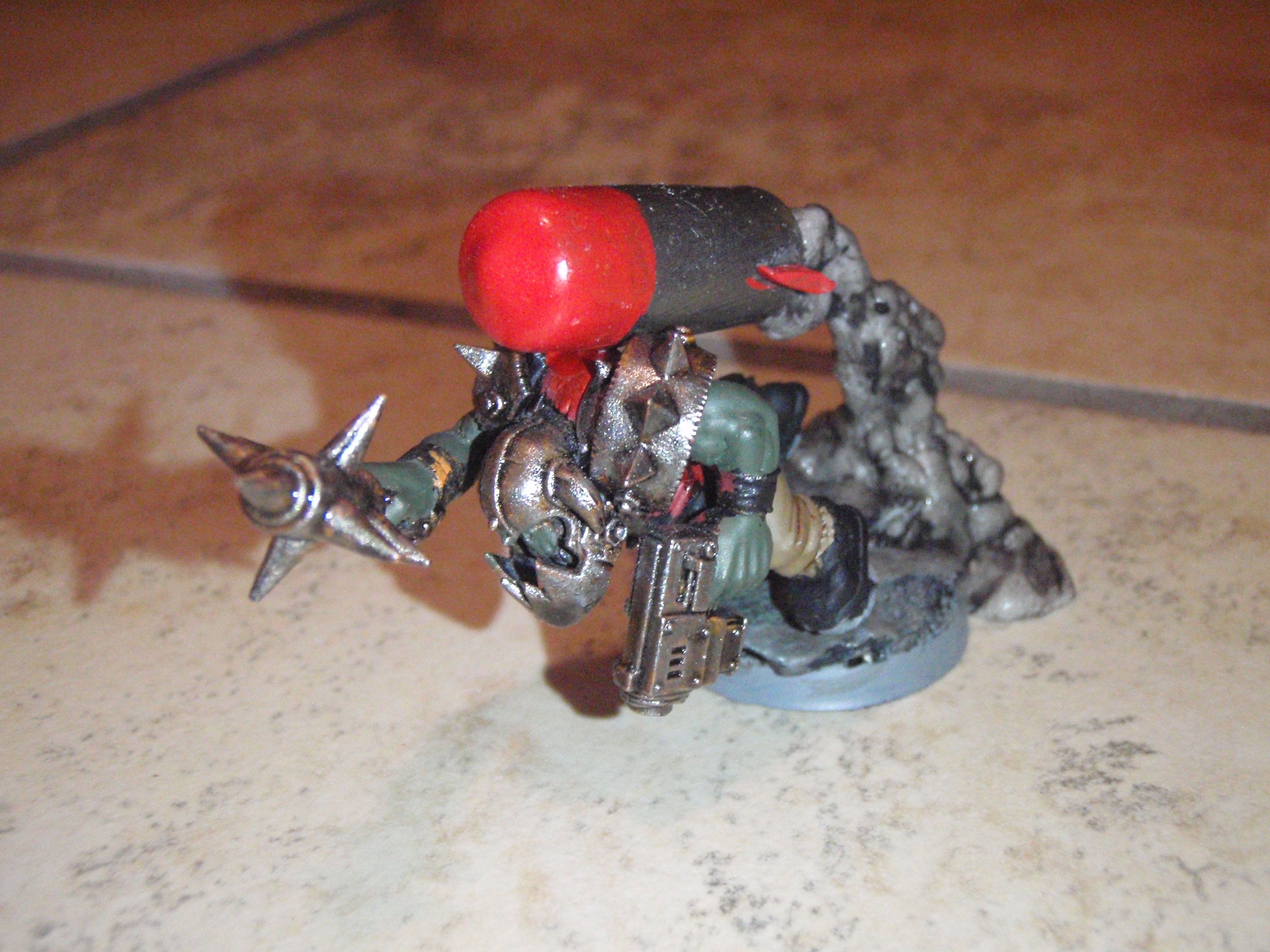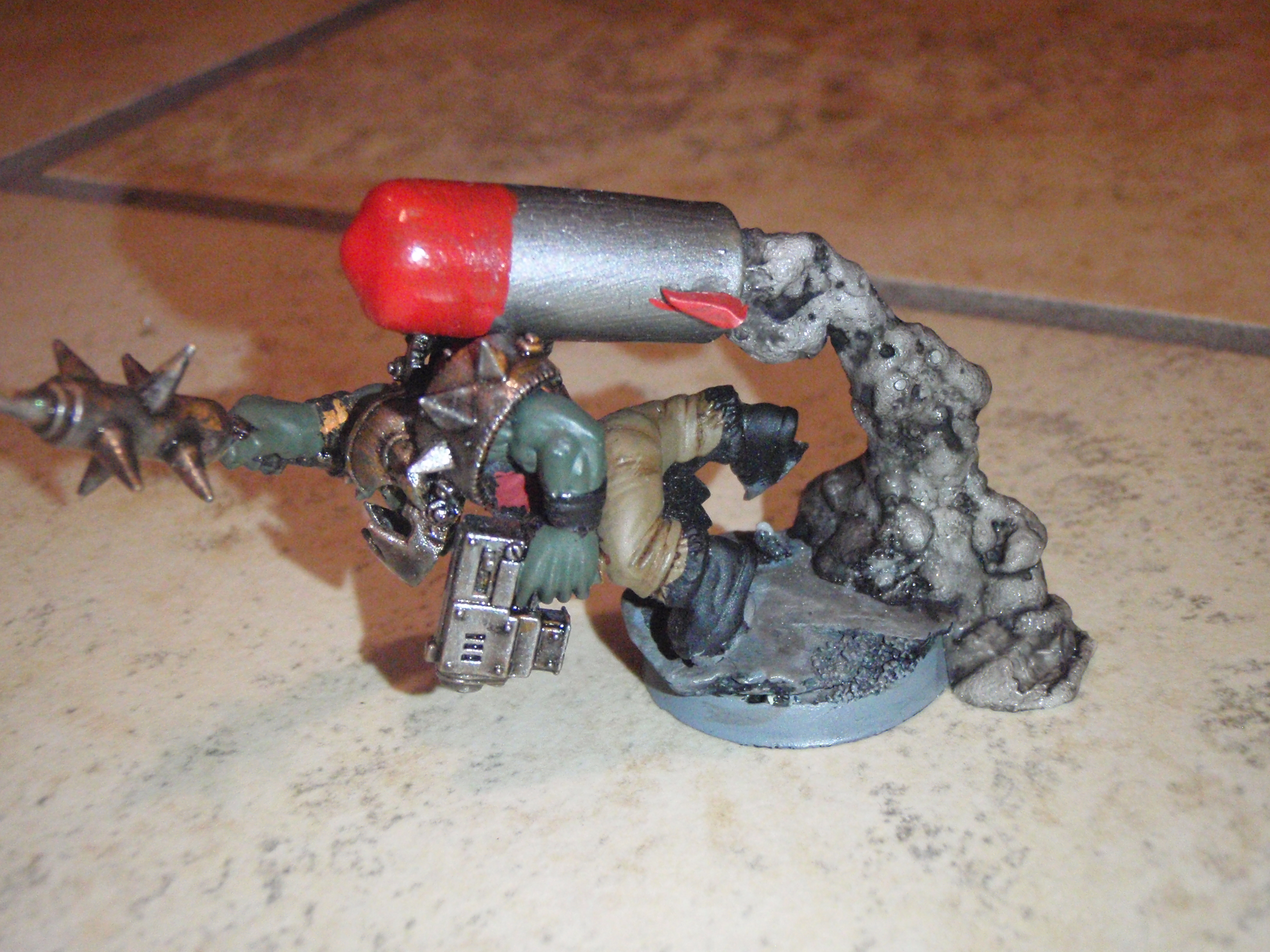 Good use of found materials. Would say the red on the tubes needs a couple more layers, and then the rockets need a wash with a darkish brown to knock the shine down. Oh, and the teeth on the second ork really need to be painted, but thats just my OCD kicking in.