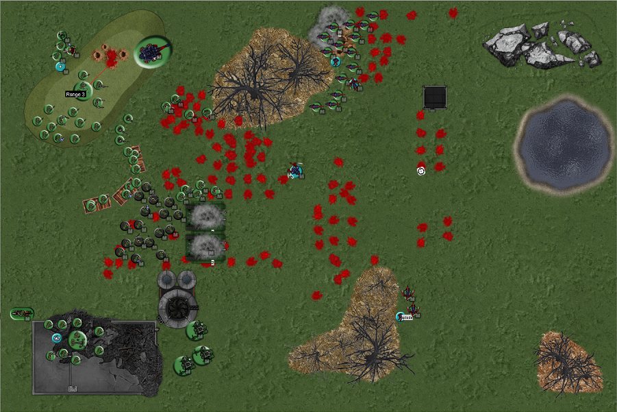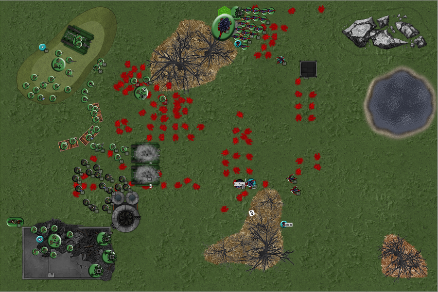 The Tyrant sensed the loss of the Termagaunts from burning weapons of the enemies Chimera. It Knew it had to move one of its pulsing floating brains to take care of the problem but there was also the urgent pounding of the enemies artillery that was ending the lives of its Gargoyles to the south. She headed towards the Artillery as she sent the Brains to deal with the Chimera.