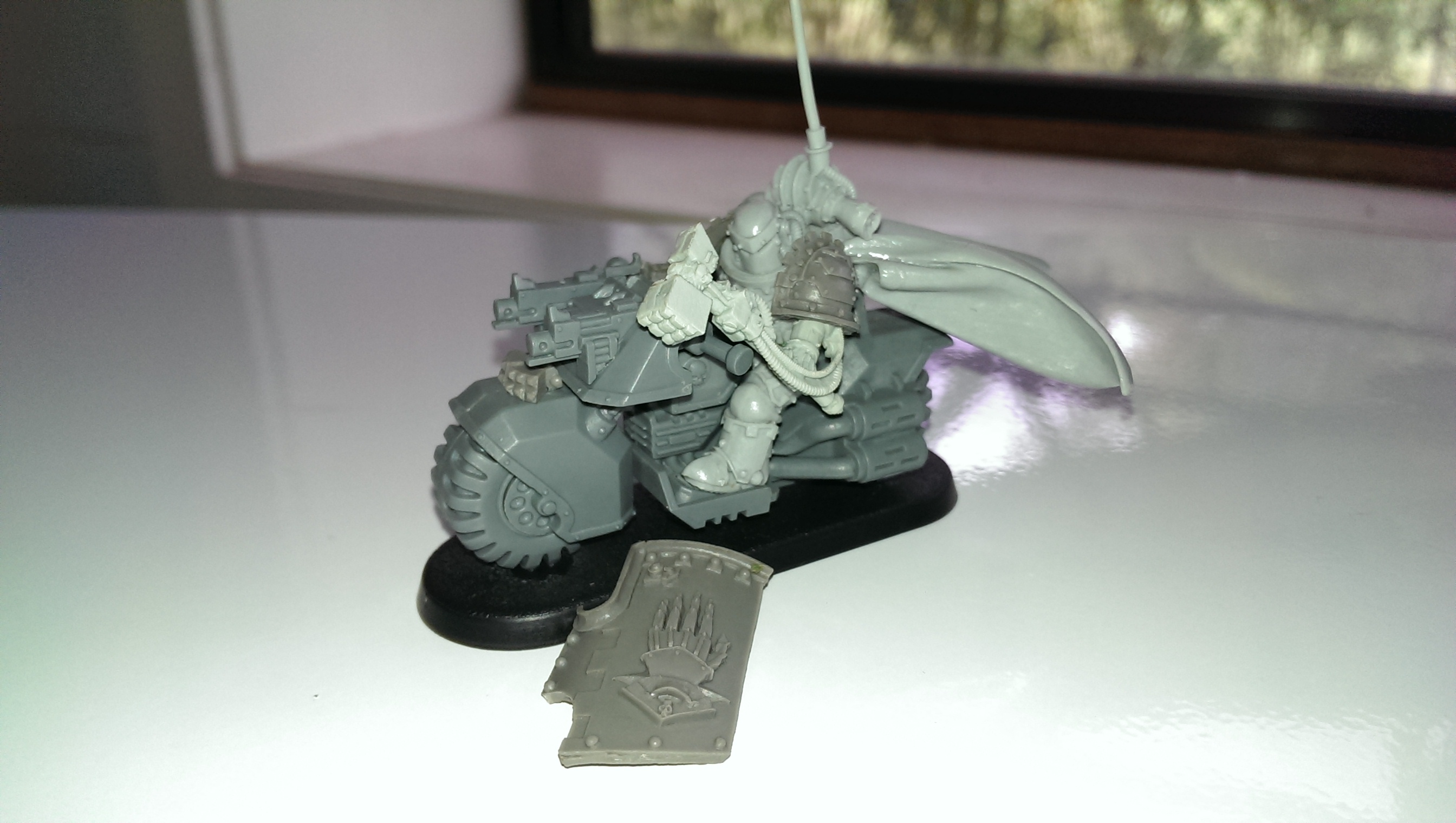 I used a Medusan Immortal body, arms and shield. Asterion Moloc's cape. Iron Hand's Command Squad Backpack with antenna. Iron Hands Tactical Squad upgrade pack Thunder Hammer.