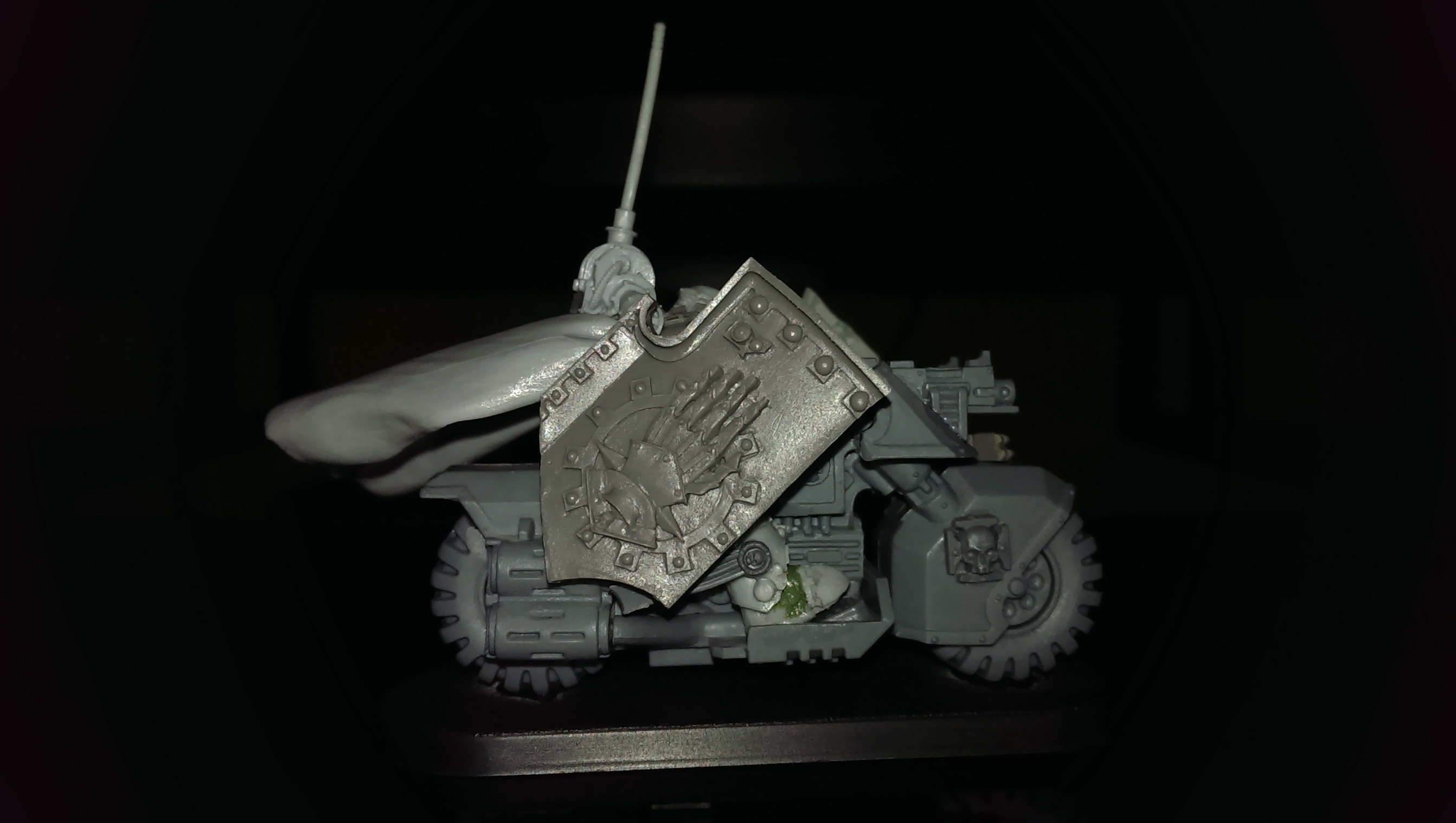 The shield is magnetized so he can be run as either a Shield Eternal Iron Hands Chapter Master or a Gorgon's Chain Chapter Master.