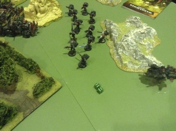 Speaking of the Furisio, it opened up with its Frag Cannon, as nasty a piece of kit as I’ve come across, and did a mighty seven wounds. Ruh roh.