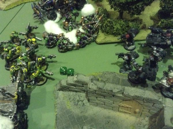 When all was said and done, the Space Marines took an absolute battering, and lost all their models – not that they had many left - with the Librarian himself finally finished off by the Stormboyz nob. Hammer of Wrath killed one model on impact, and it’s nice to see a 6th edition change doing some good for once. The Stormboyz were now out of melee, and consolidated backwards.