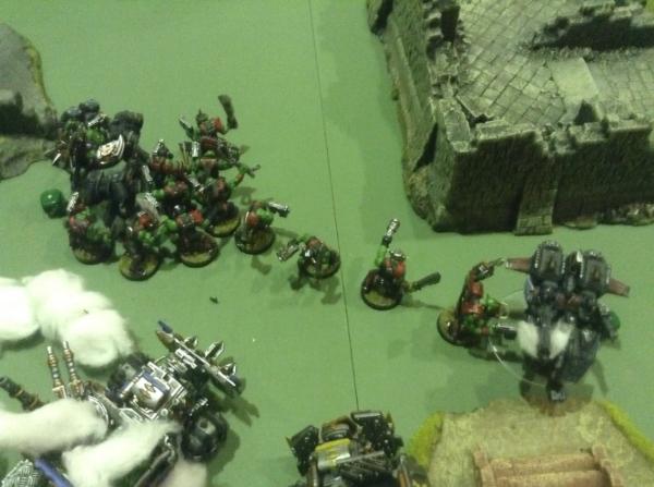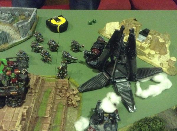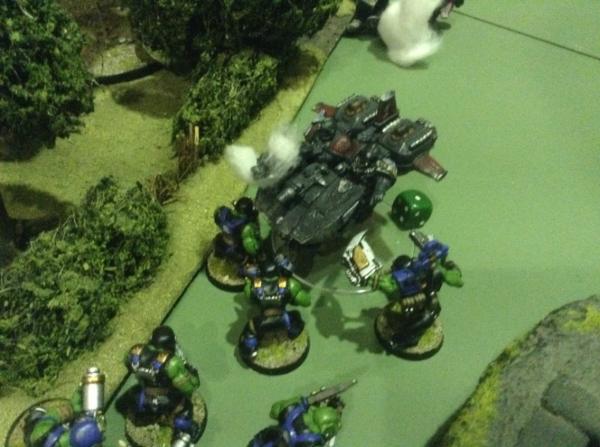 …before Wrecking it with a cheeky bit of Droppod shooting! The Boyz inside hopped out behind to avoid the Assault Marines, not fancying being charged, nothankyouverymuchyesindeednothanks.