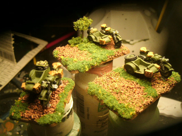 Withthe release of Desperate measure we have been slowly changing are lists and buying a few new models.SO w picked up a set of bikes for something different.The FProbing force list from REDBEar still rocks but we switched over to the HEro TAnk company list,So we can ditch the hen and CHicks.Soghere is a few piks of the bike in WIp. Also would anyone have a Spare German bike with side car? i need it for aCOmmand Model.