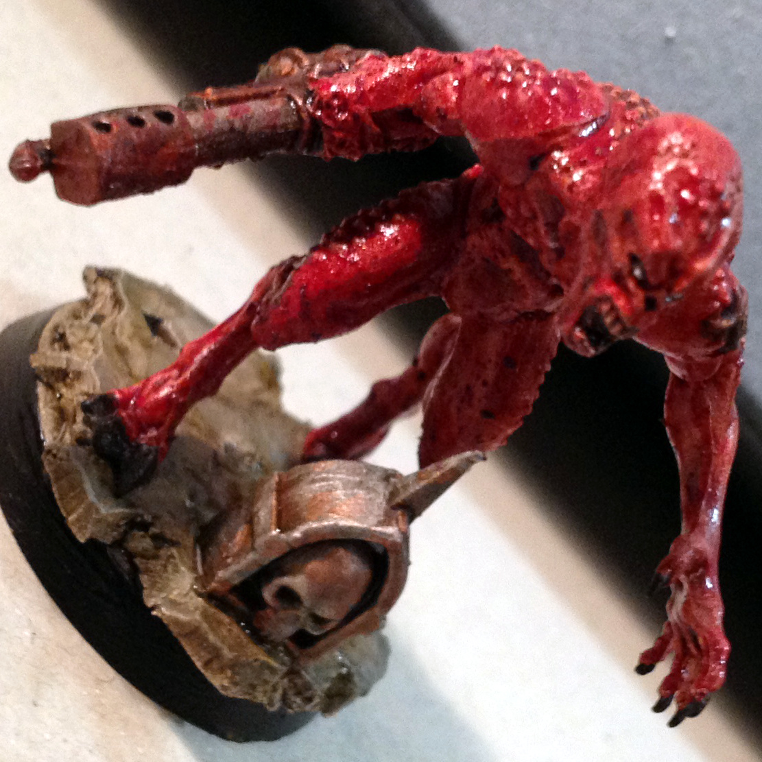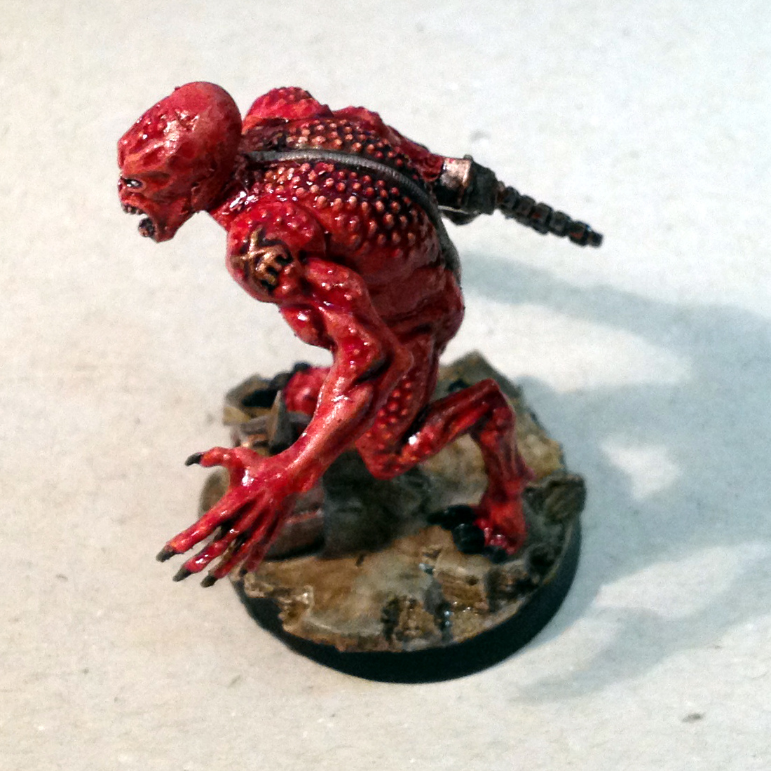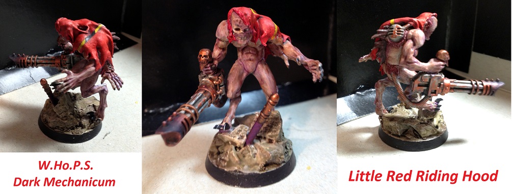 I like it and also the tiny robe. It makes me think that this creature has seen a Techpriest and wanted to emulate the look but, childlike, thought that draping a bit of red cloth over his head was more than enough. The naivety of that only serves to make the character even more creepy and horrible, which is great!