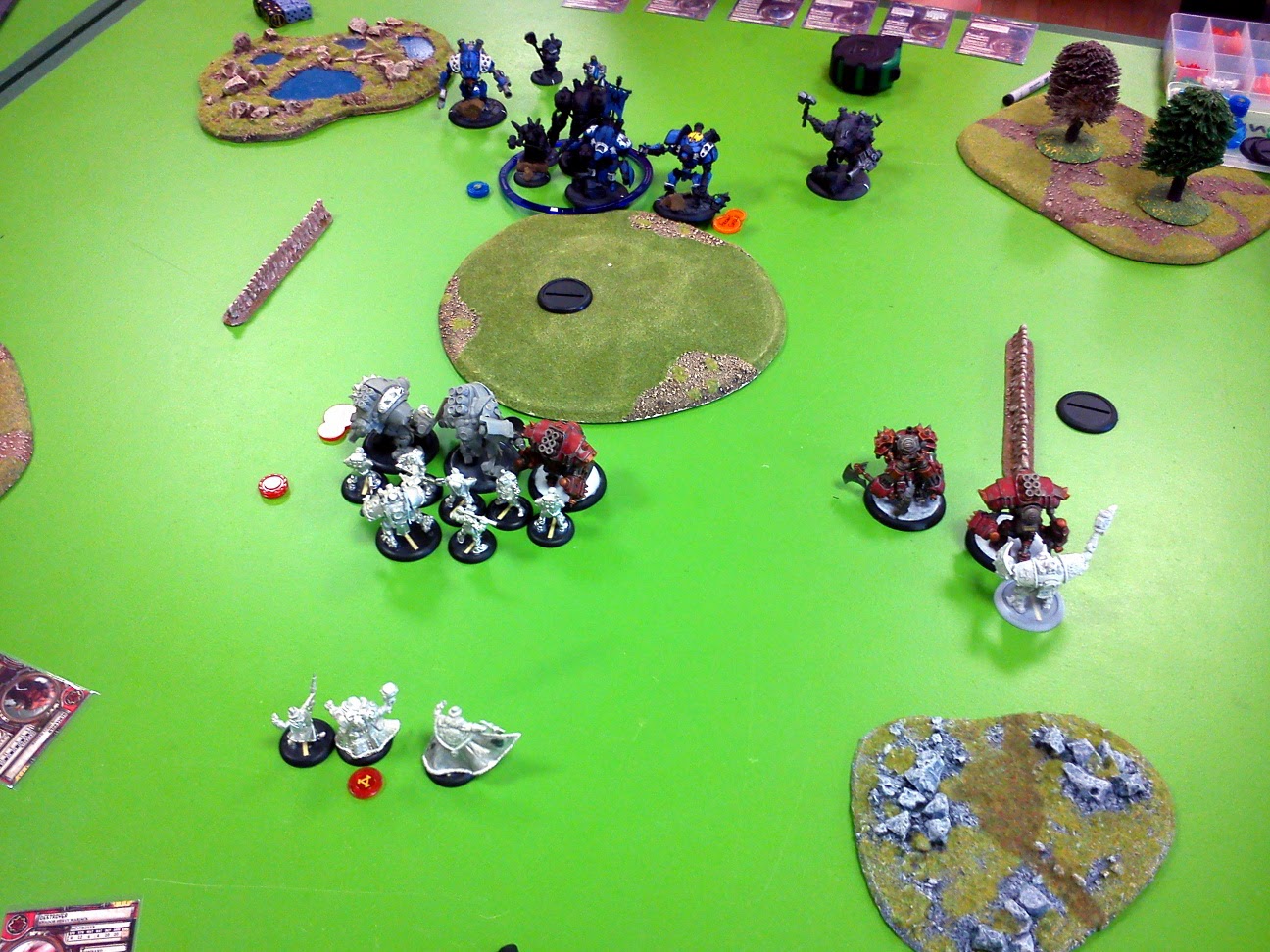 I scored a point for controlling the flag. Then I realized that I hadn't paid the focus to charge with the Spriggan, meaning he shouldn't have been able to kill the Stormclad, so we put the it back on the table. Hey, in my defense, at least I remembered