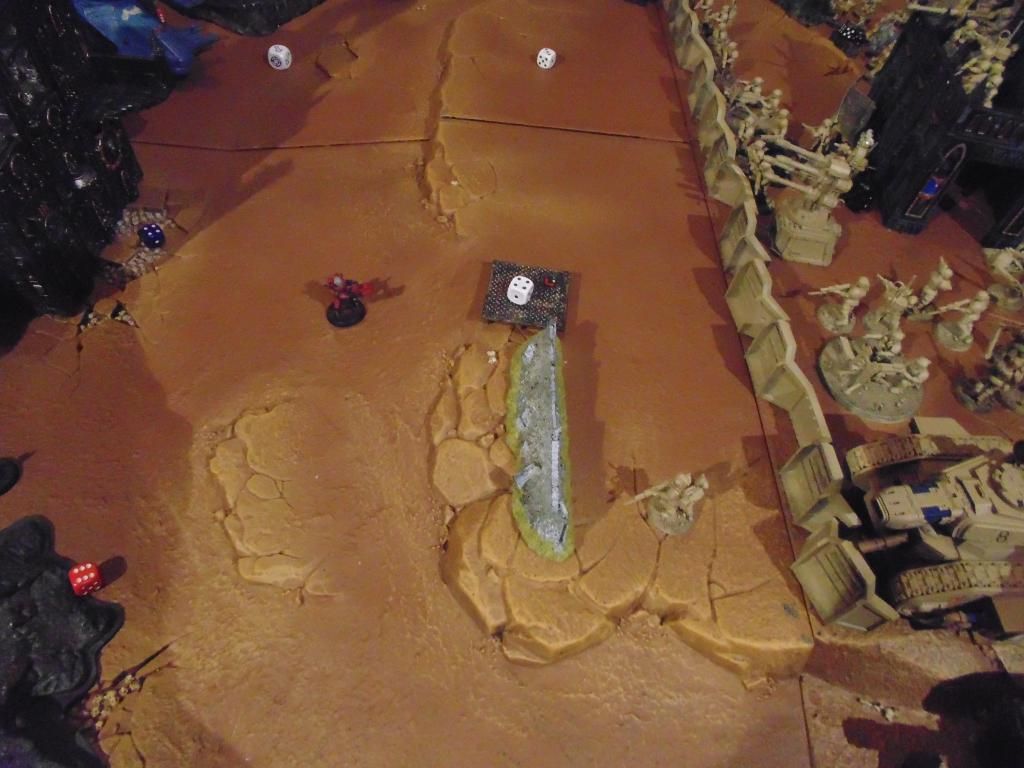 LRBT Command Tank managed to immobilise itself trying to get a shot at the firewarriors in the back field, and had to settle for shooting at longstrike instead (to no avail).