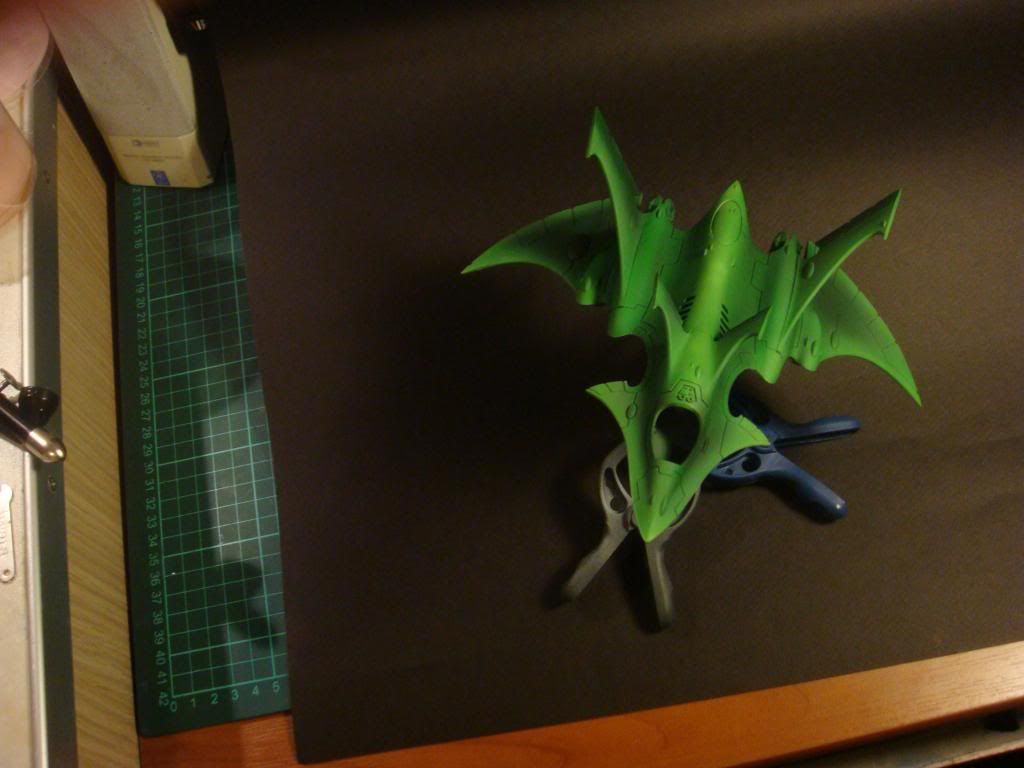 Heya this looks really sweet! Please keep the picture diary coming, I have started to airbrush and am looking to see more work with blending over large panel areas. I like how the initial green turned out after your two-tone shading.