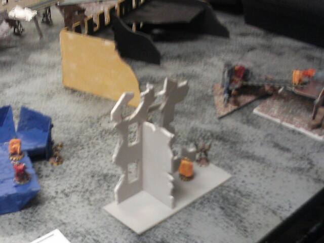 Turn three: He moves up more of his models and hides some of them as well them as well. He drops his heavy with a plasma cannon down to get a better view of a good clump of my gang. A few shots were taken on my juve and leader but they both miss. Almost the same thing happens on my turn, with putting my far left heavy on overwatch and shooting at his ganger and juve but missing with the other heavy, leader, juve, and ganger. My downed juve is still downed and can only crawl around.