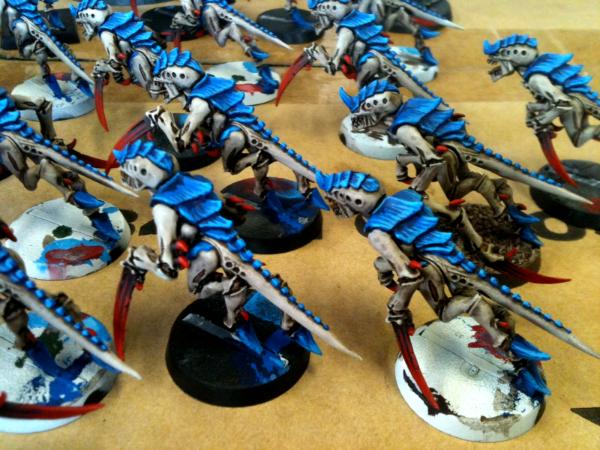 A light blue layer with a dark blue wash for the tongues + weapons (this is really noticable and effective on Devourers).